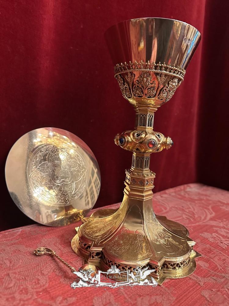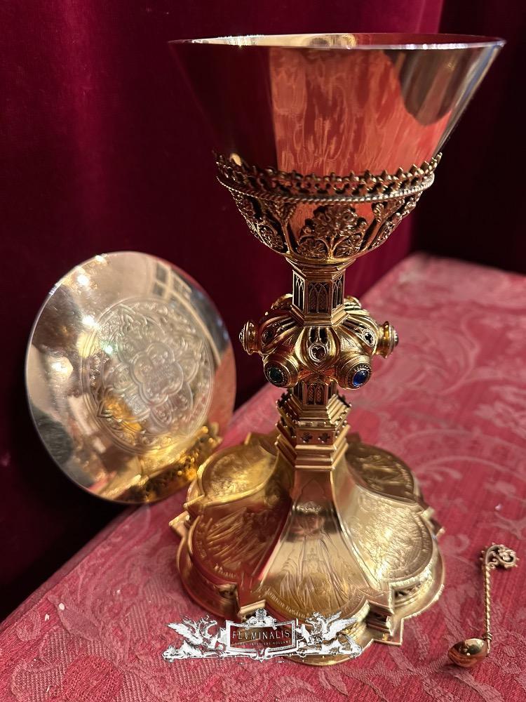 Chalice With Original Paten & Spoon By J. Van Roosmalen & Zn Utrecht style Gothic - Style en Full - Silver / Silver Marks Present, Utrecht Netherlands 19 th century ( Anno 1885 )