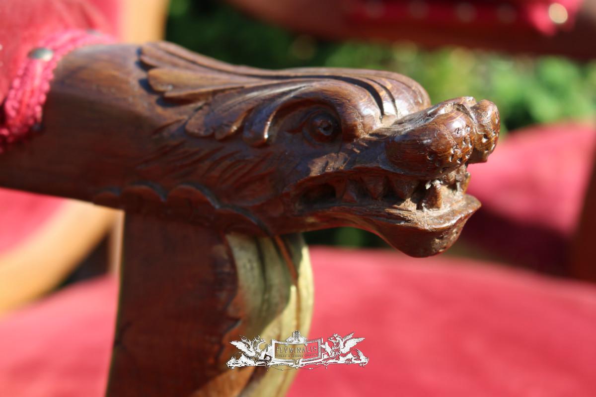 Altar - Seats. Completely & Professionally Refit According To The Traditional Methods And With Original Materials. en Oak wood / Red Velvet., Belgium 19th century