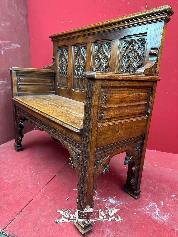 Bench style Gothic - Style en Oak wood, Belgium 19 th century
