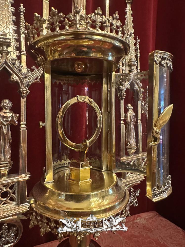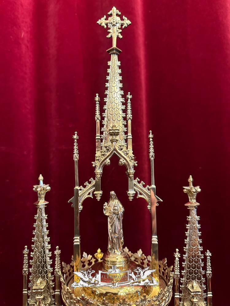 Cillinder Monstrance style Gothic - Style en Brass / Bronze / Gilt / Glass, Belgium 19 th century ( Anno 1875 )