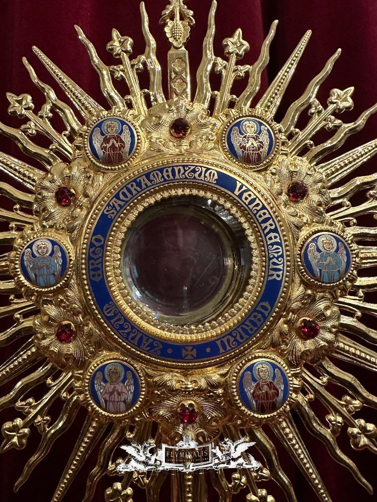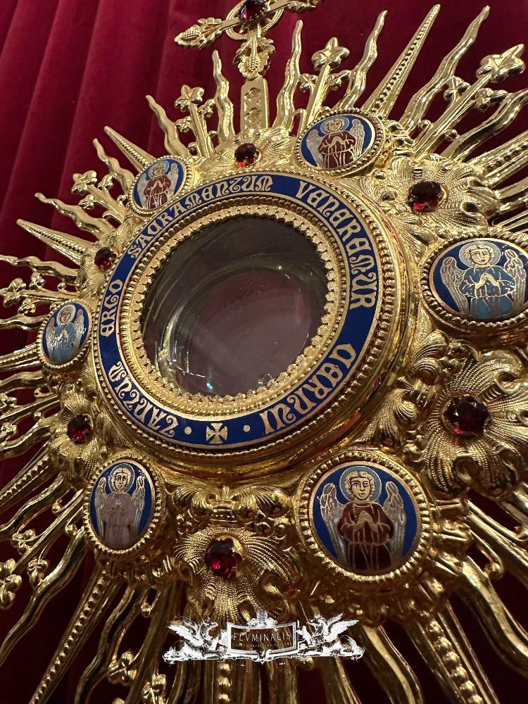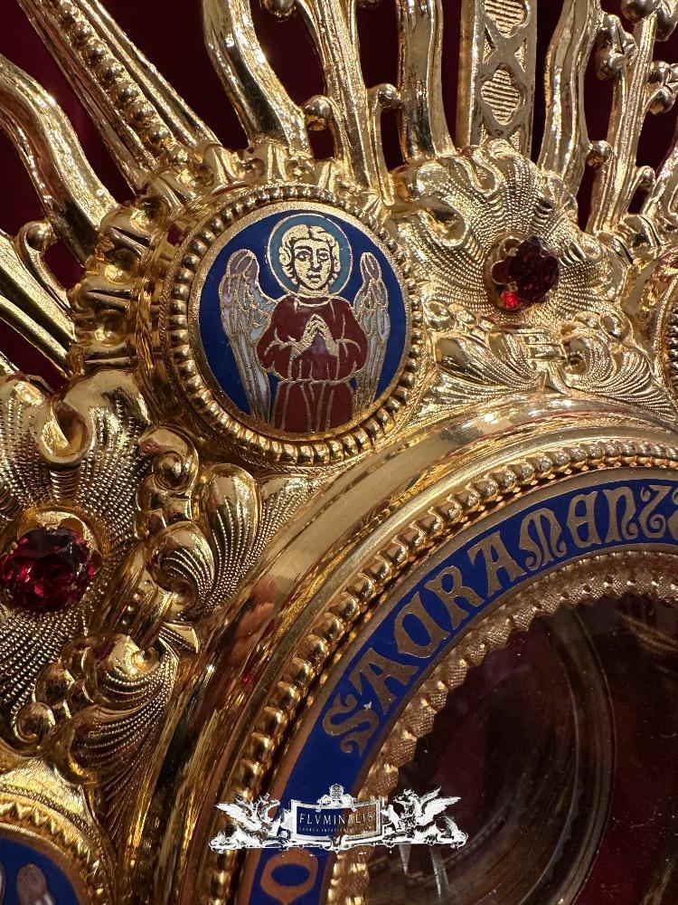 Monstrance With Original Lunula style Gothic - Style en Brass / Gilt / Stones / Enamel / Glass, France 19 th century ( Anno 1865 )