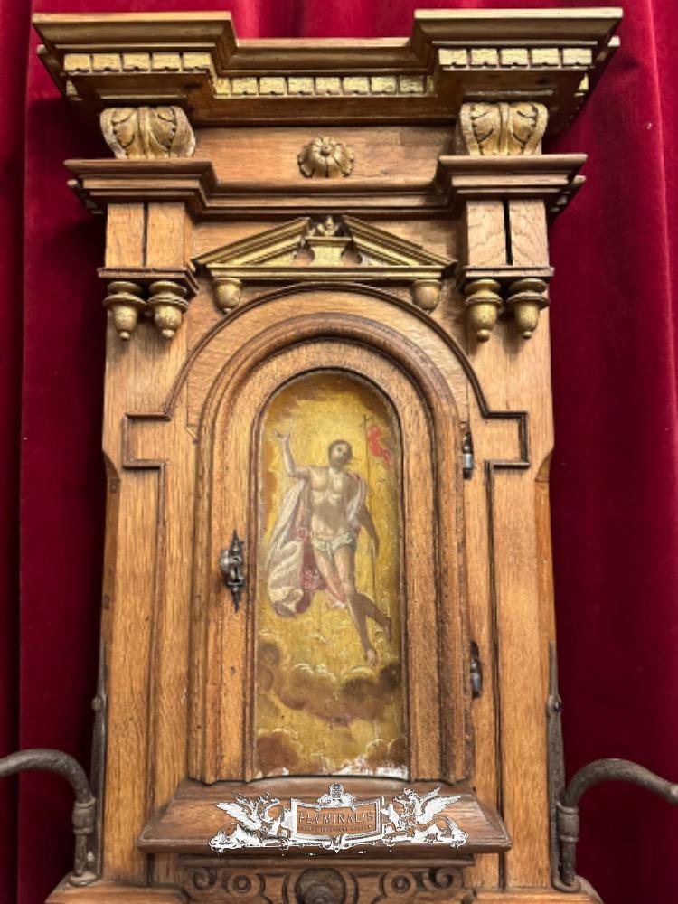 Tabernacle Front With Imagination Of The Risen Christ style Romanesque - Style en Oak wood / Hand - Forget Iron, Flemish - Belgium 19 th century ( Anno 1850 )