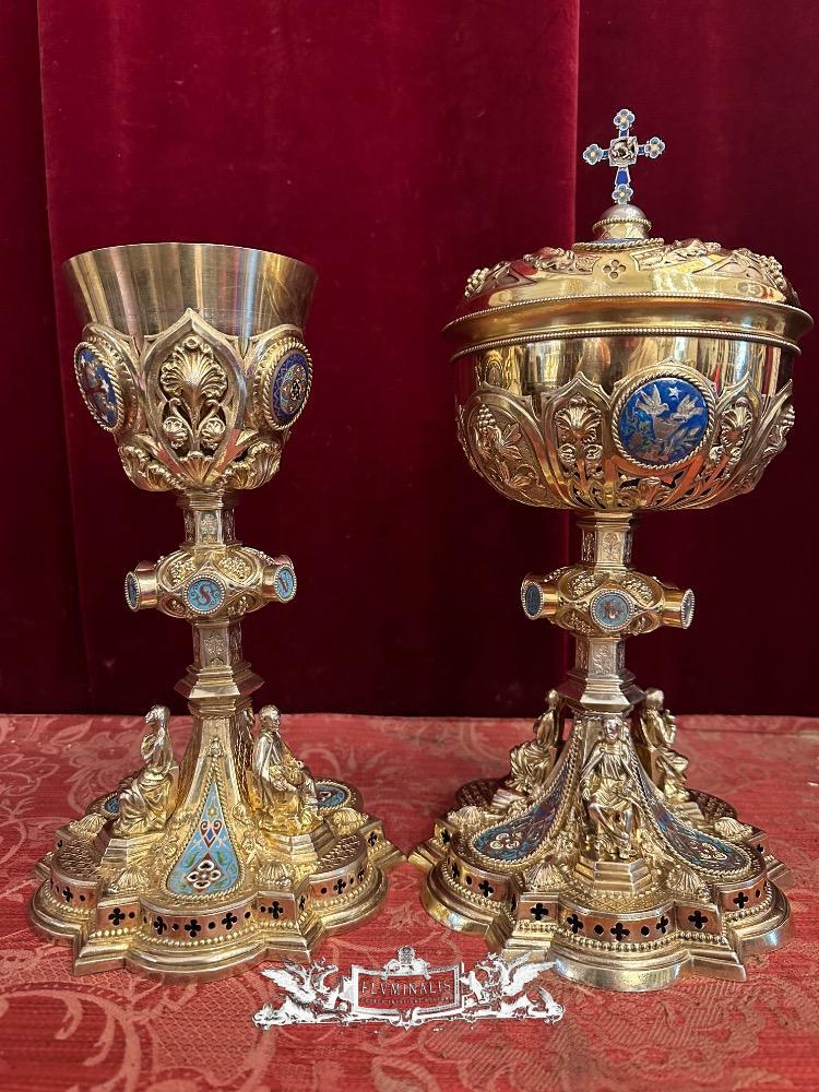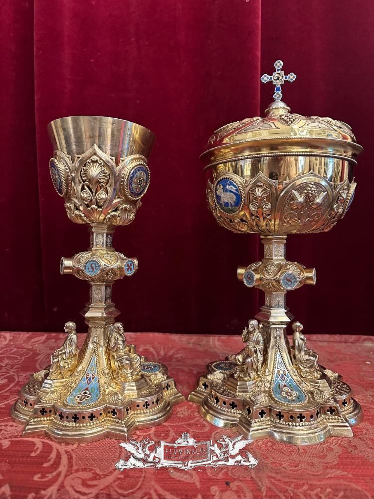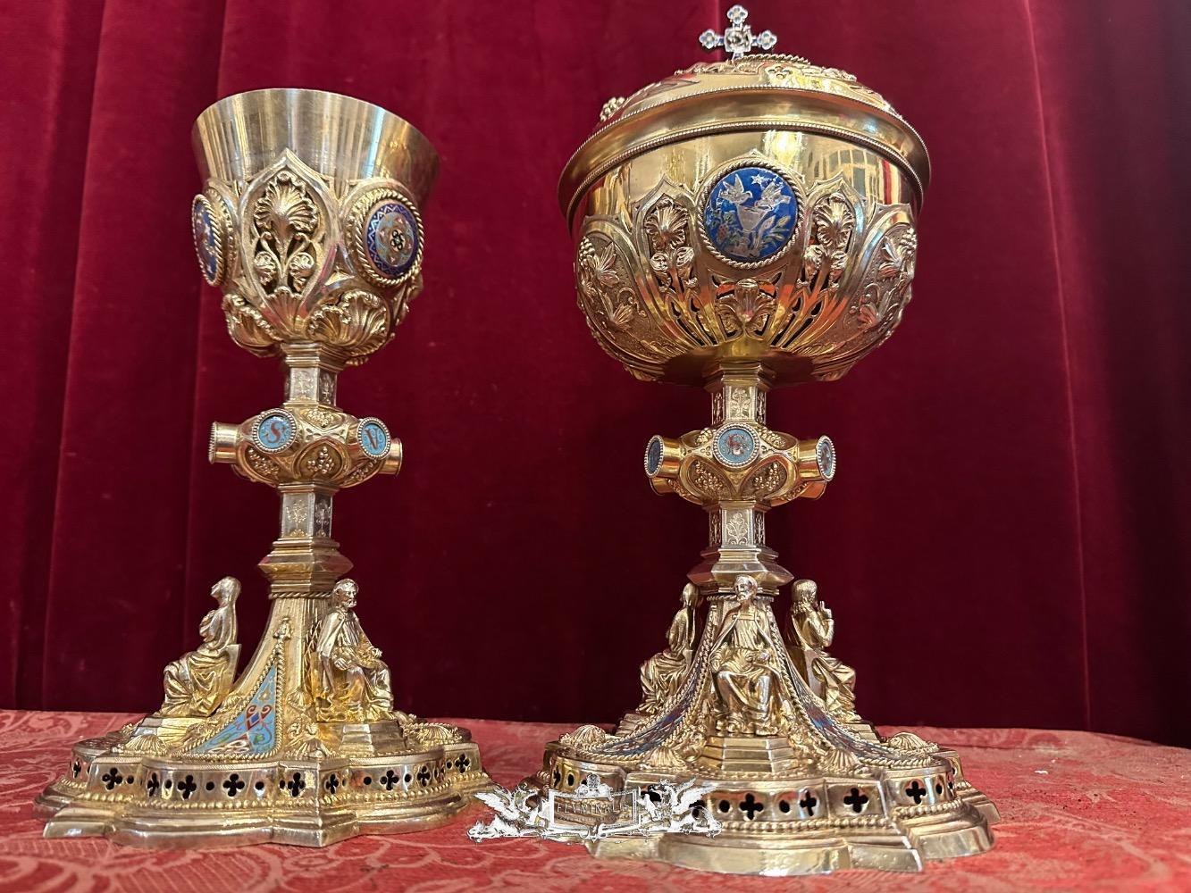 Chalice & Ciborium style Gothic - Style en Full - Silver / Enamel, France 19 th century ( Anno 1865 )