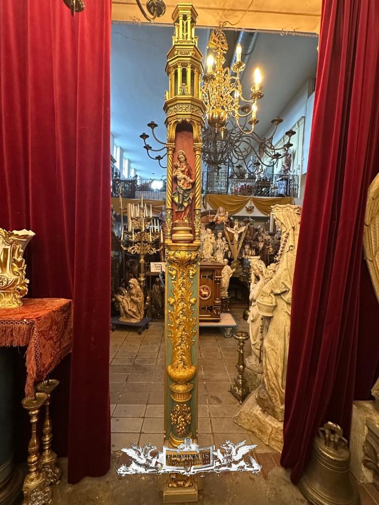 Wall Stand With Statue St. Mary en Hand - Carved Wood Polychrome , Southern Germany 20 th century
