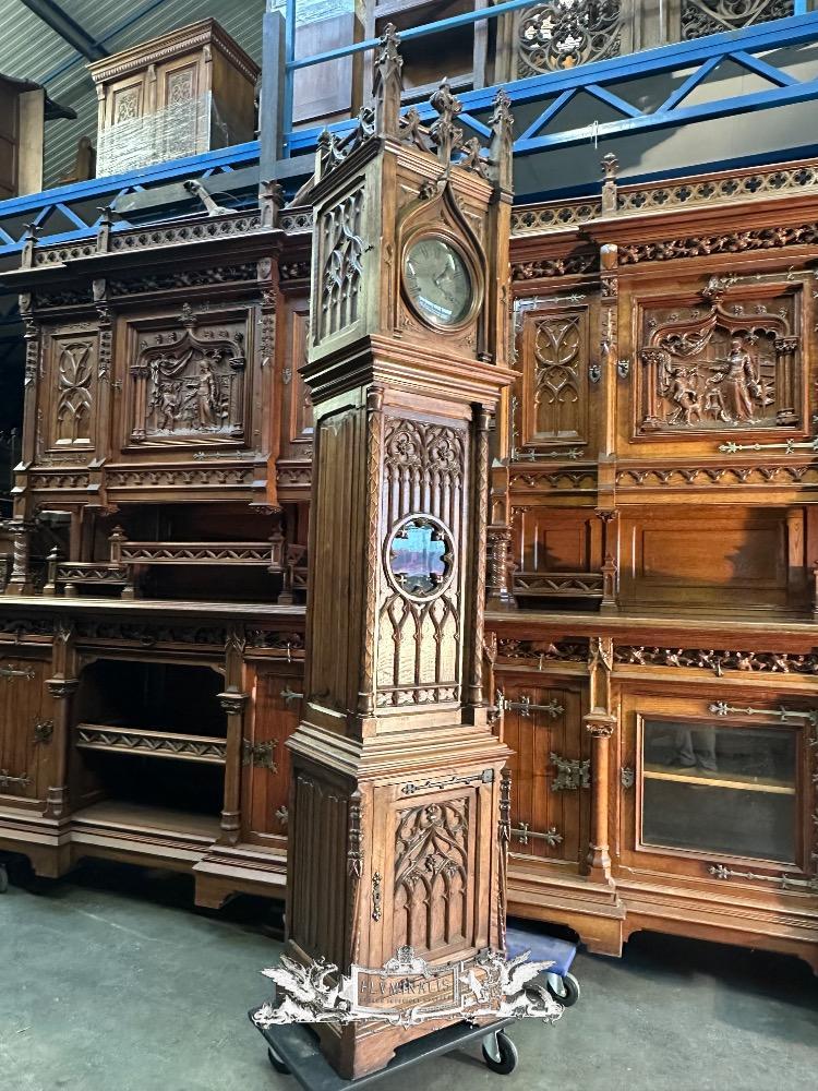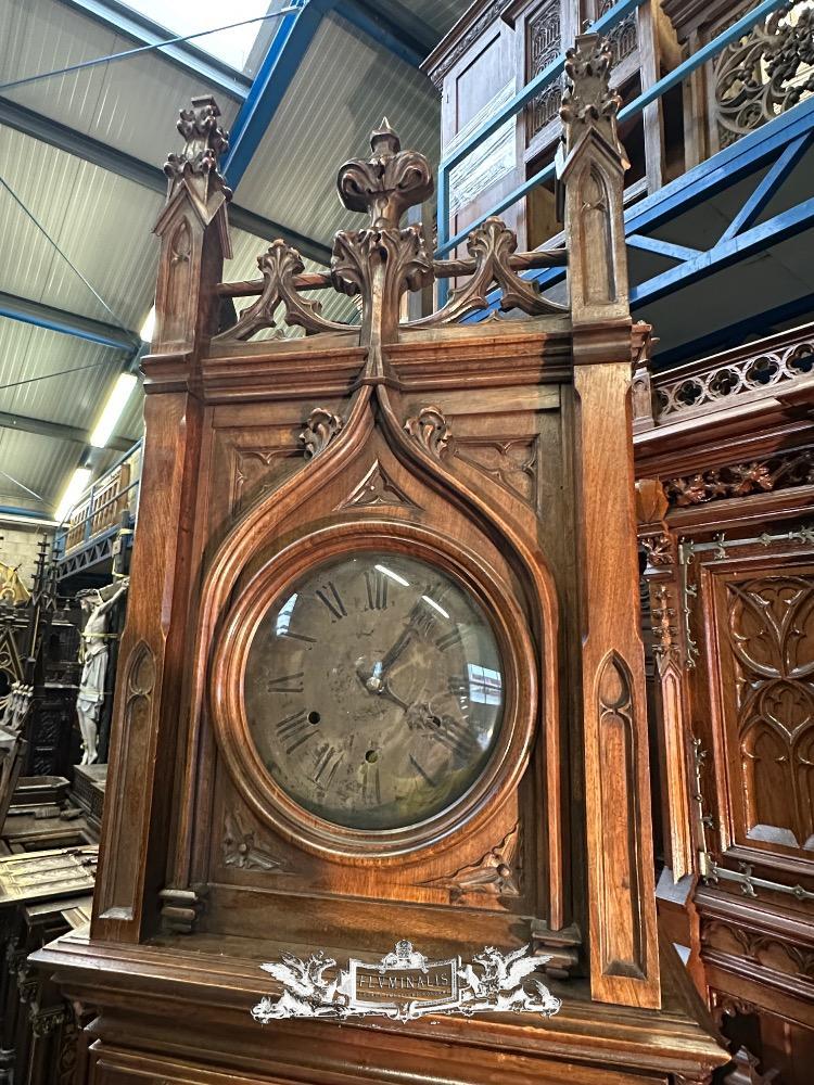 Exceptional Standing Clock style Gothic - Style en Walnut wood / Glass / Brass, France 19 th century