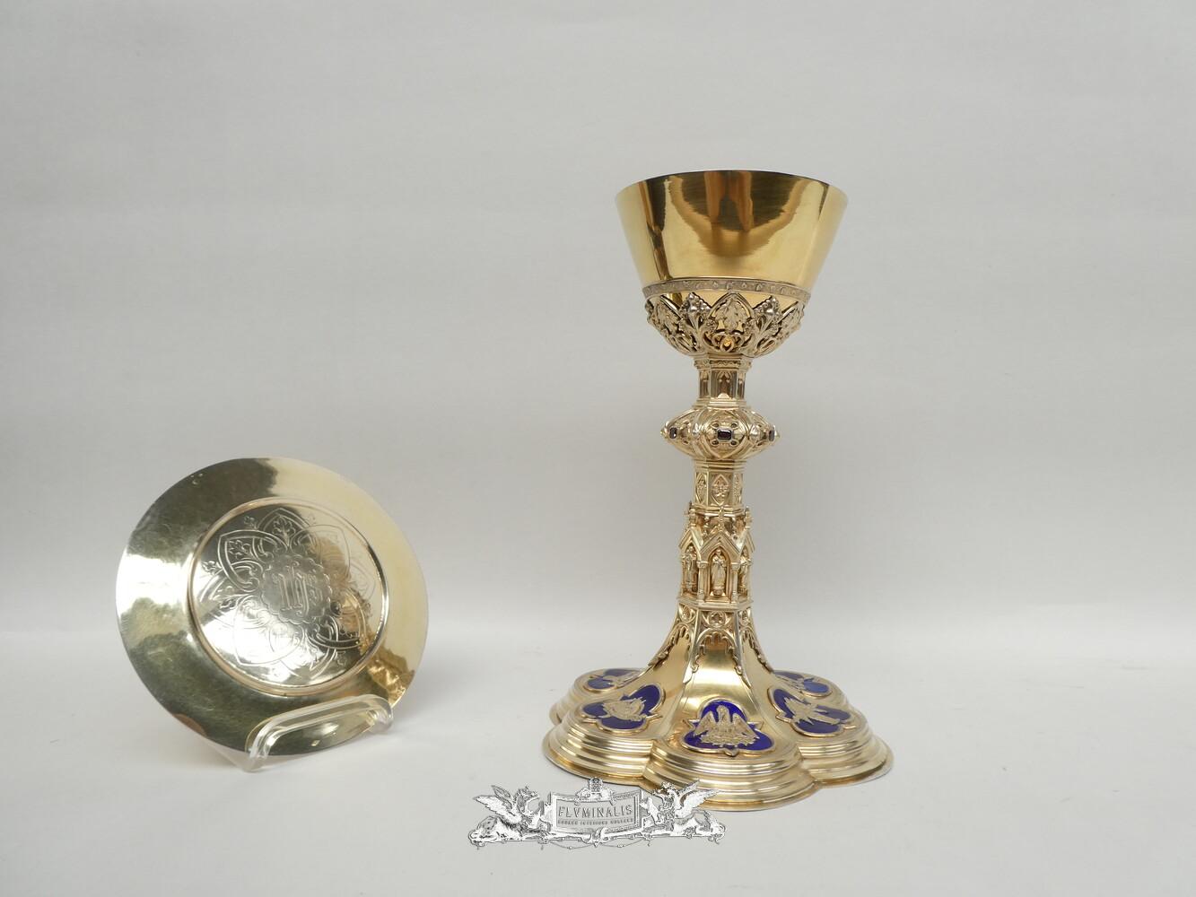 High Quality Full Silver Chalice & Paten style Gothic - Style en Full - Silver / Enamel Elements , Dutch 19 th century ( Anno 1875 )