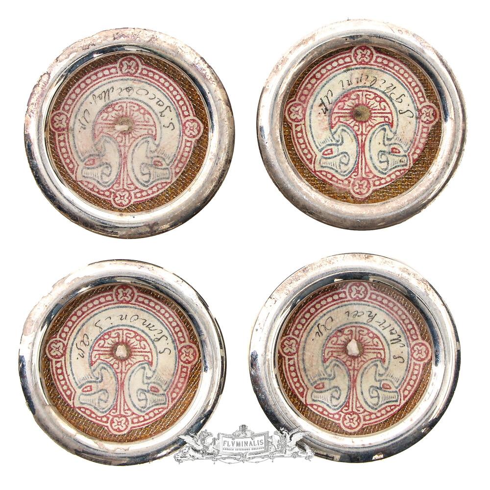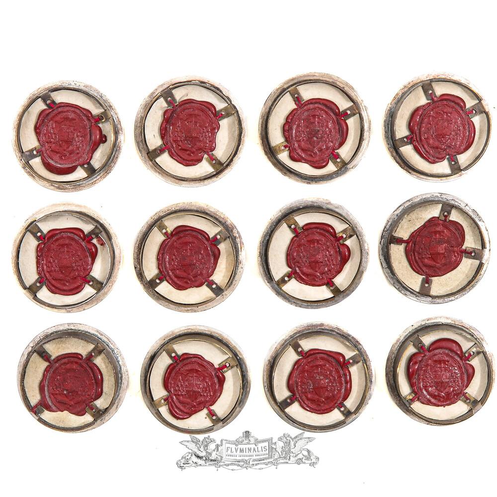 Reliquary - Relics All 12 Apostles en Brass / Glass / Wax Seal, Belgium 19 th century
