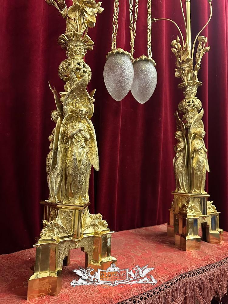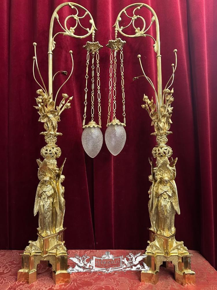 Exceptional Standing Sanctuary Lamps style Gothic - Style en Bronze / Polished and Varnished, France 19 th century ( Anno 1865 )