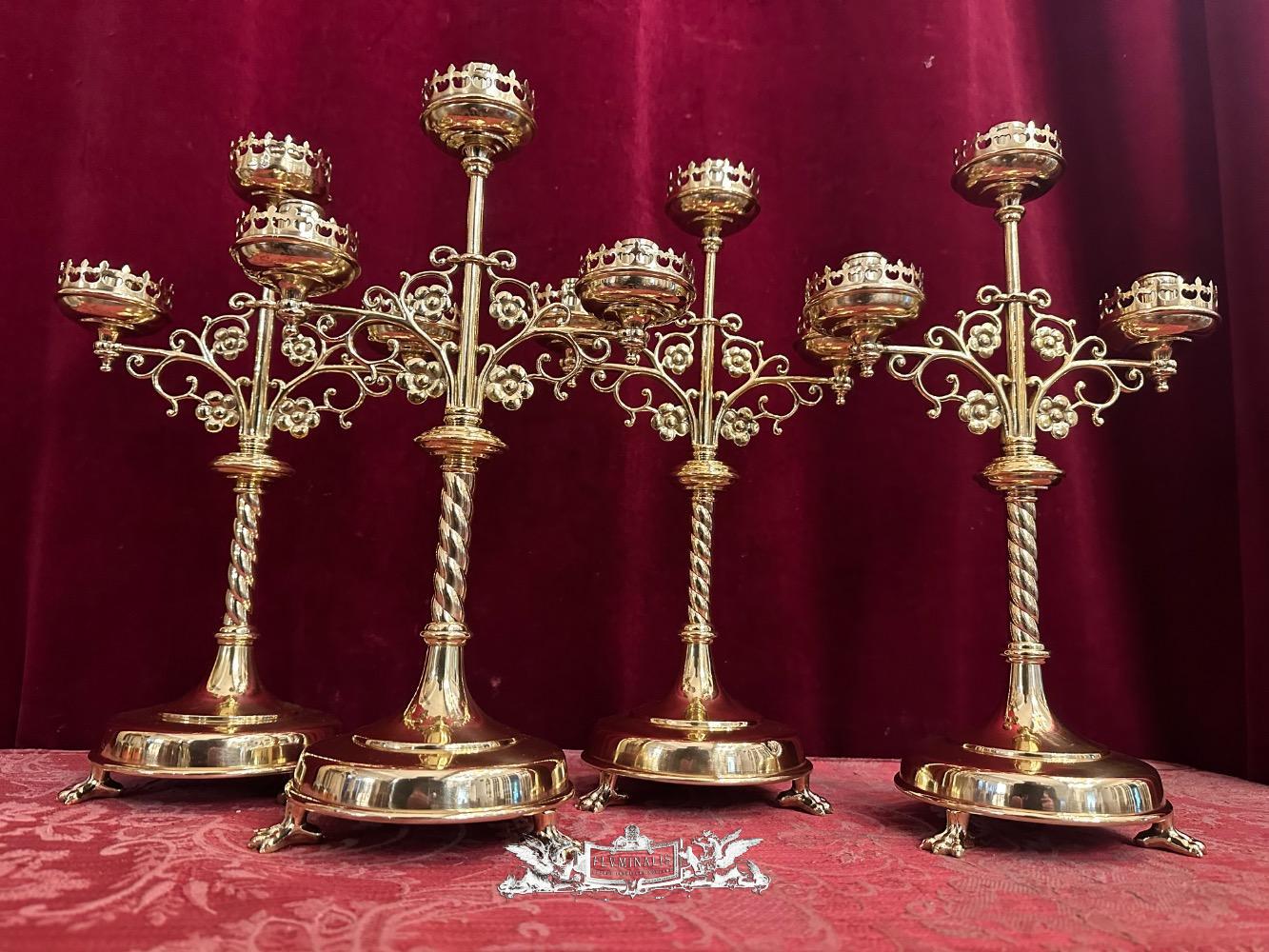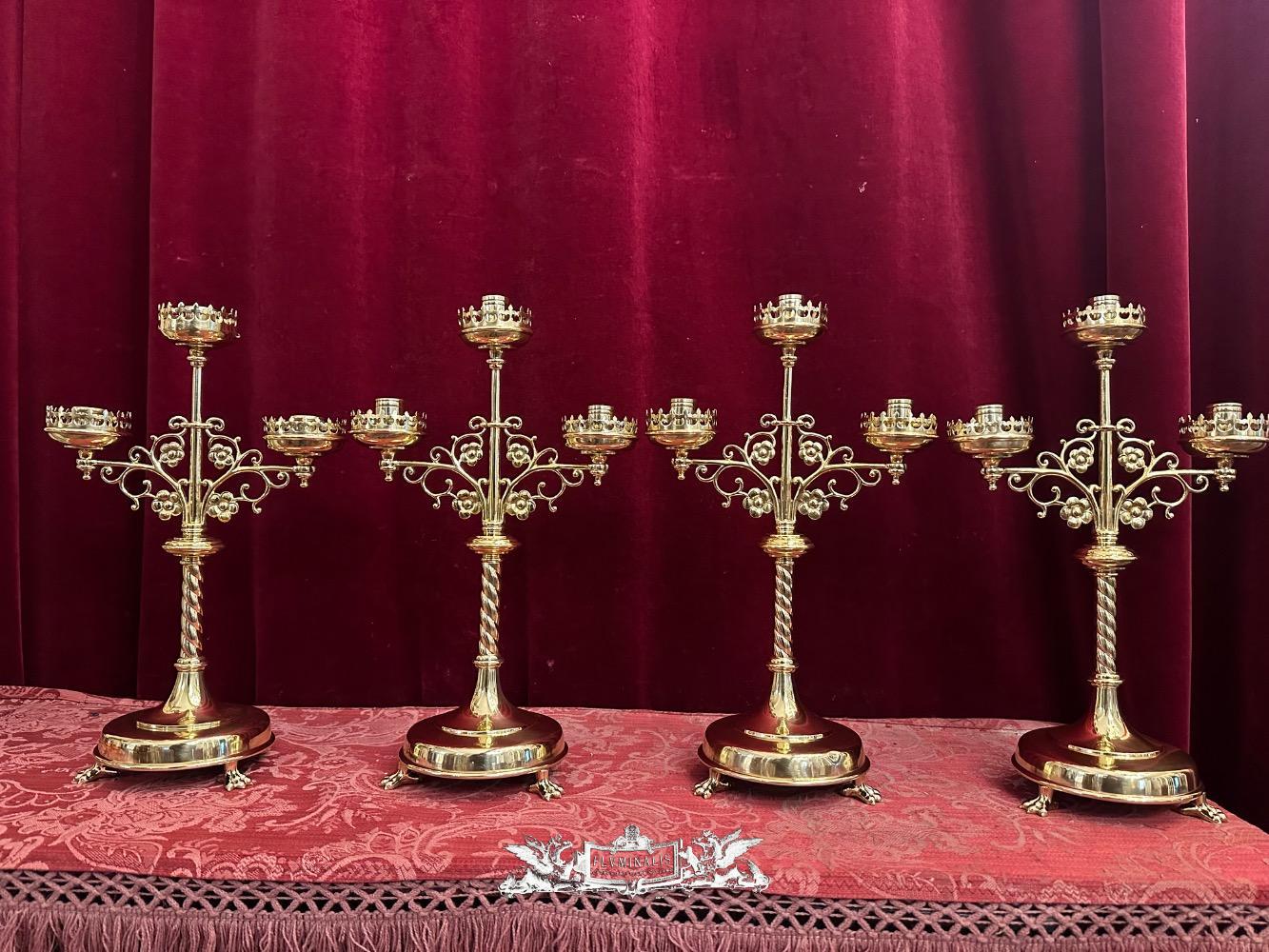 Matching Candle Holders style Gothic - Style en Brass / Bronze / Polished and Varnished, Belgium 19 th century ( Anno 1885 )
