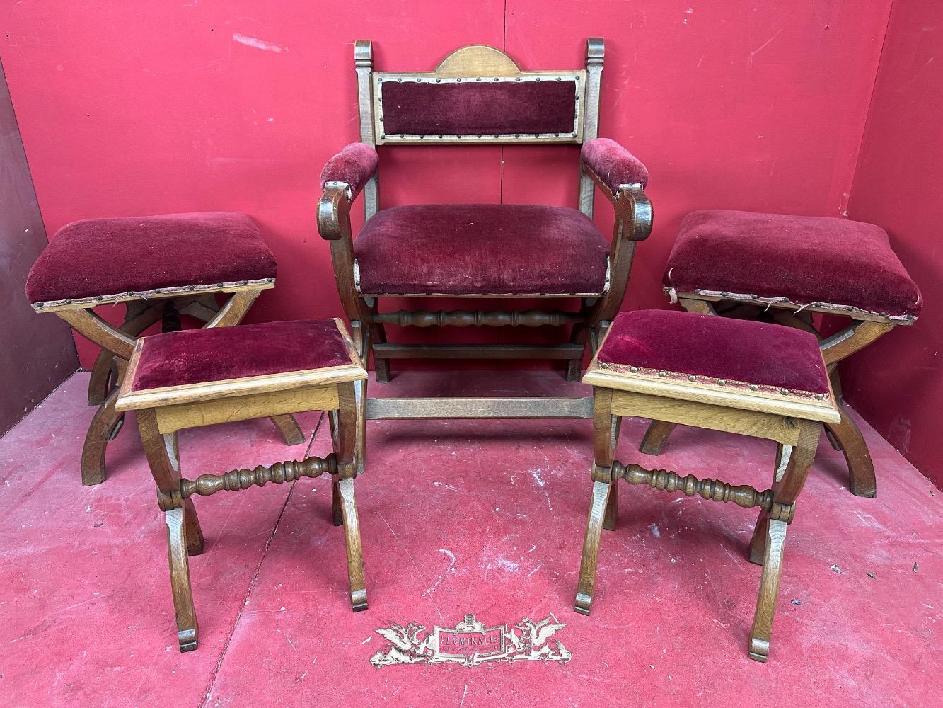 Set Altar - Seats style Gothic - Style en Wood Oak / Red Velvet, Belgium 19 th century ( Anno 1875 )