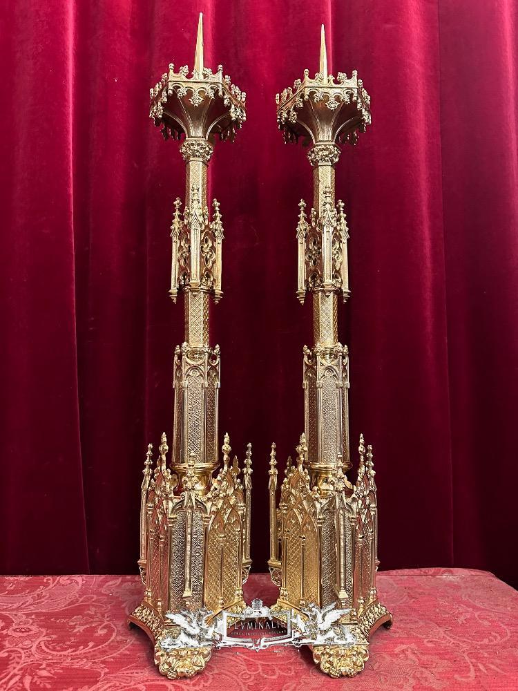 Candle Holders Measures Without Pin style Gothic - Style en Bronze / Polished and Varnished, France 19 th century ( Anno 1885 )