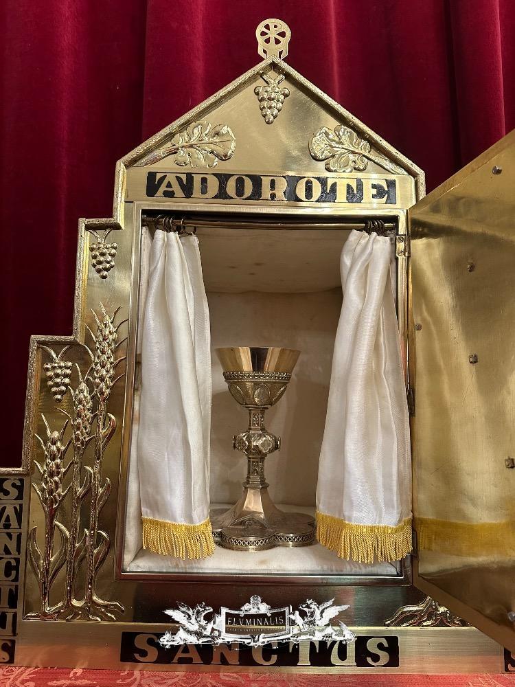 Tabernacle With Original Key style art - deco en Brass / Bronze / Fabrics / Polished & Varnished, Netherlands 20 th century ( Anno 1930 )