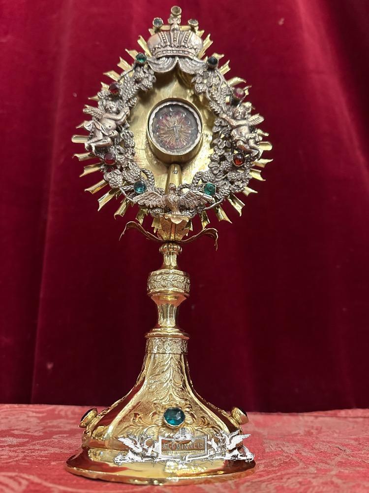 Reliquary - Relic True Cross style Baroque - Style en Brass / Glass / Stones / Polished & Varnished, Austria 18th century Anno ( 1775 )