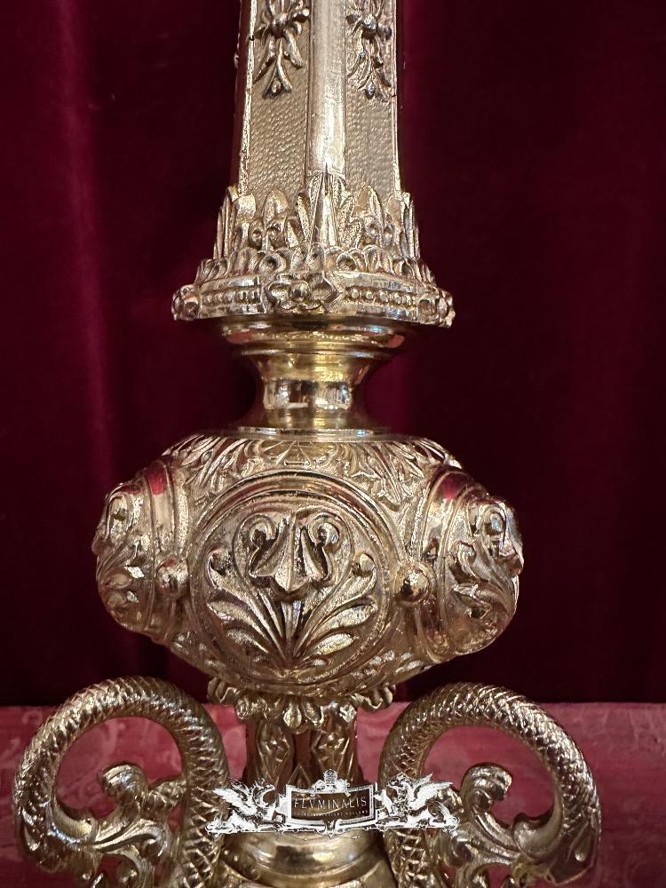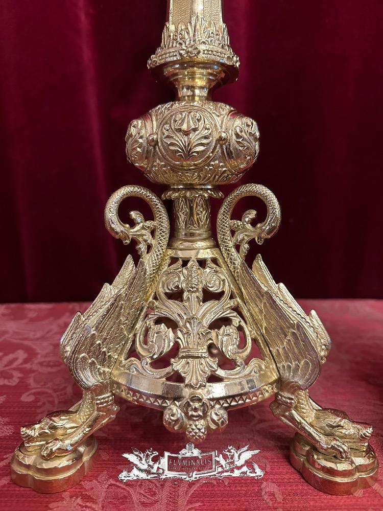 Candle Holders Measures Without Pin style Romanesque - Style en Bronze / Polished and Varnished, France 19 th century ( Anno 1875 )