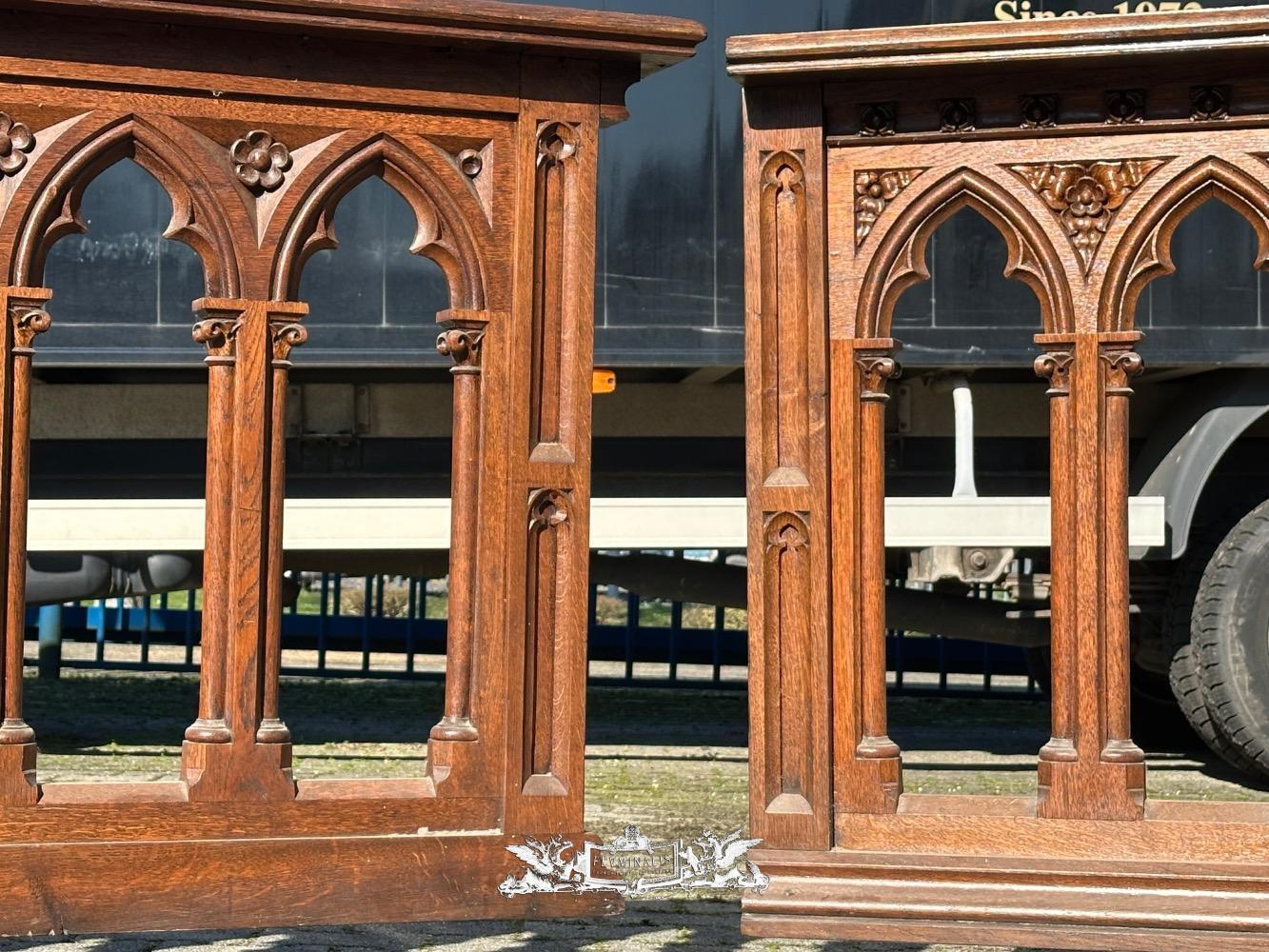 Double Sided Communion Rails. Total Lenght : 304 Cm. style Gothic - Style en Wood Oak, Belgium 19 th century ( Anno 1875 )