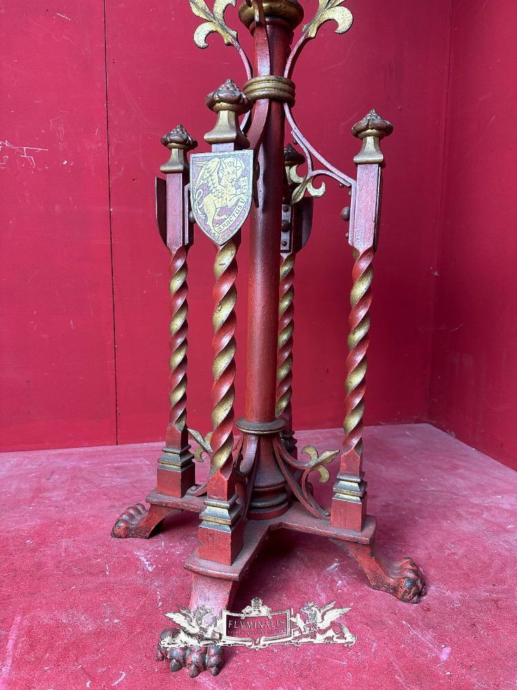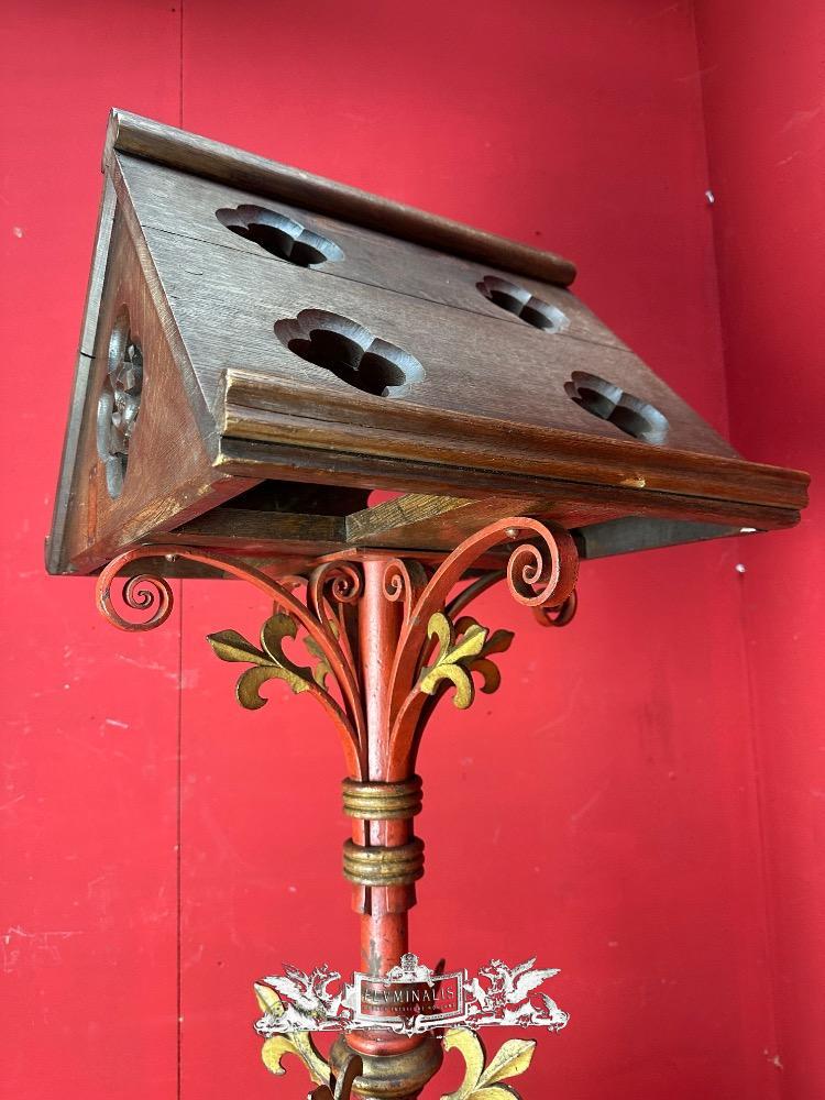 Double Sided Missal Stand style Gothic - Style en Hand Forget - Iron / Oak Wood, 19 th century ( Anno 1875 )