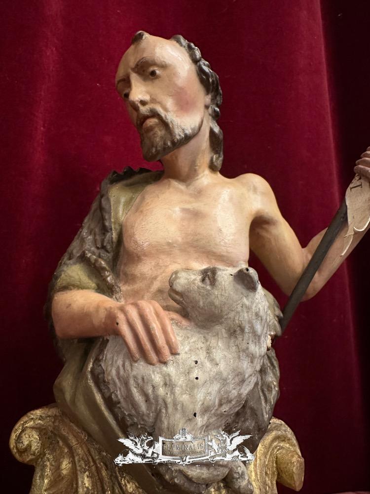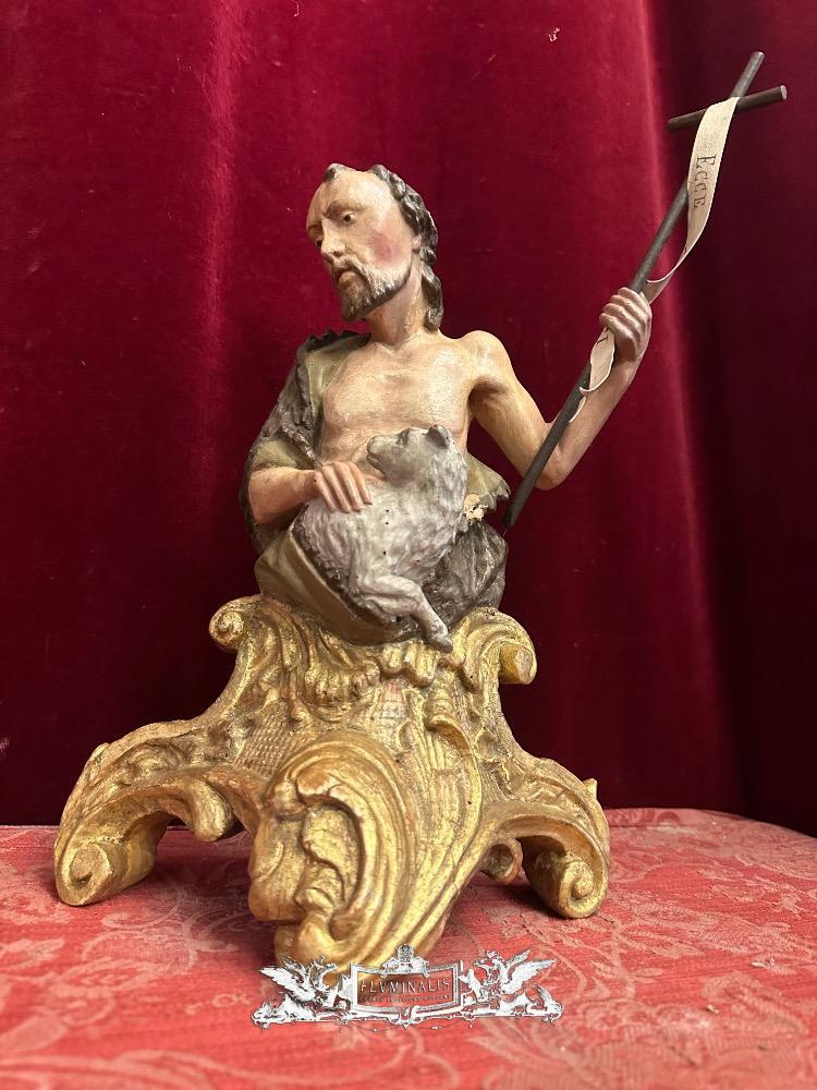 St. John Baptist Sculpture style Baroque - Style en Fully Hand - Carved Wood , Italy 18 th century ( Anno 1790 )