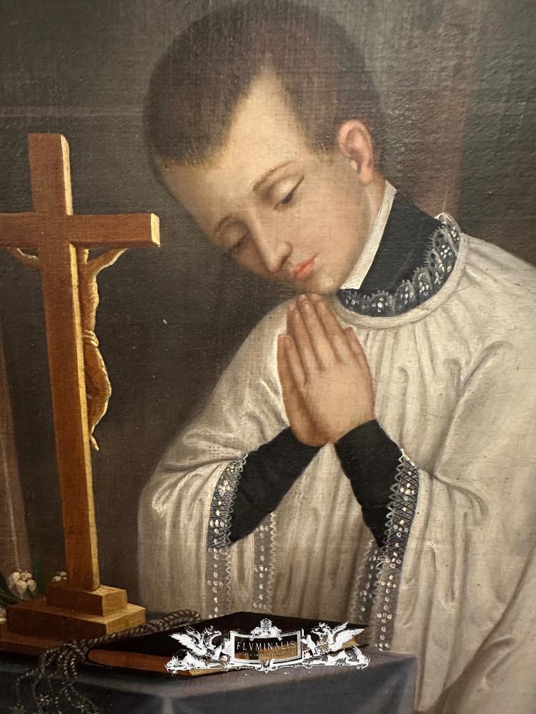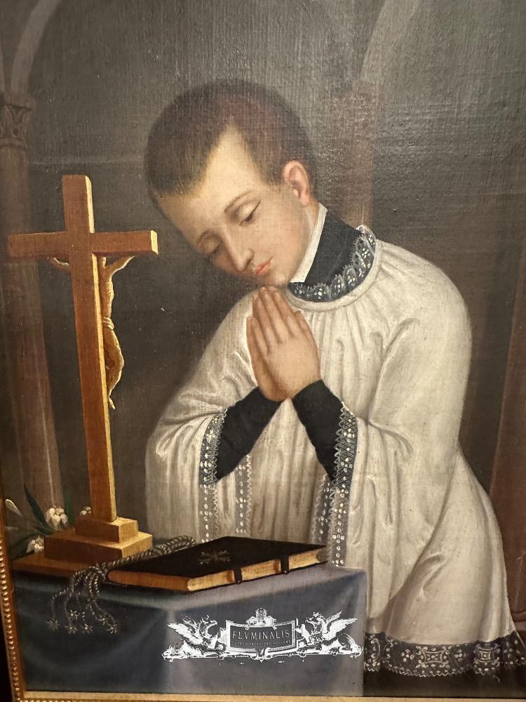 Painting St. Aloysius Of Gonzaga en Wooden Frame / Painted on Canvas, Dutch 19 th century ( Anno 1890 )