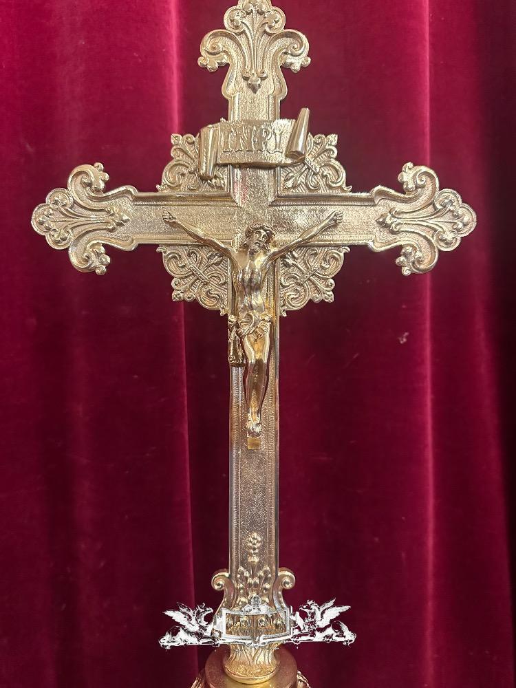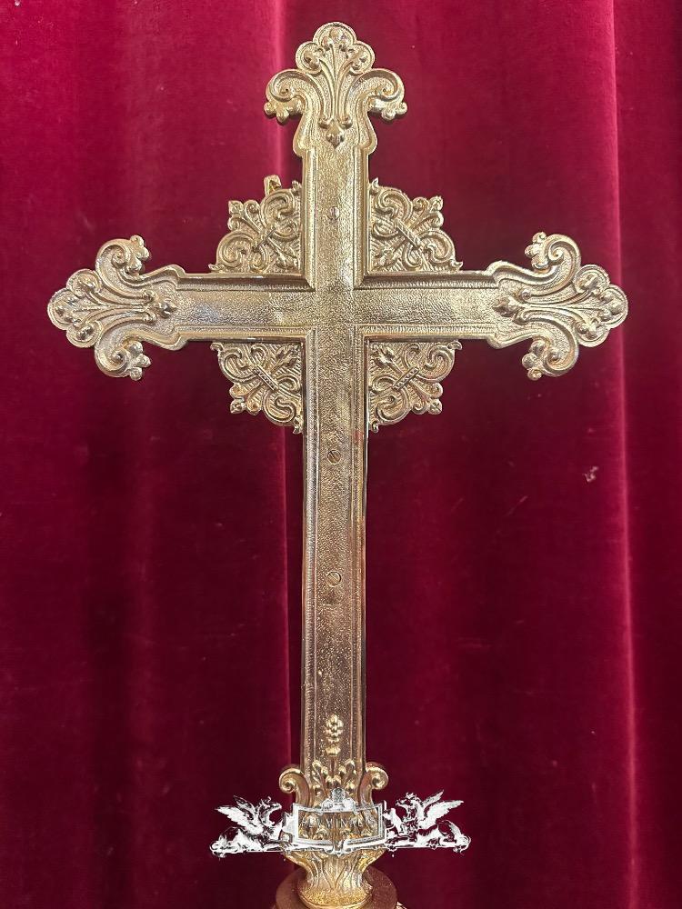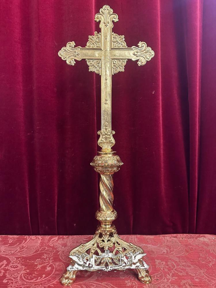 Altar - Cross style Romanesque - Style en Bronze / Polished and Varnished, France 19 th century ( Anno 1875 )