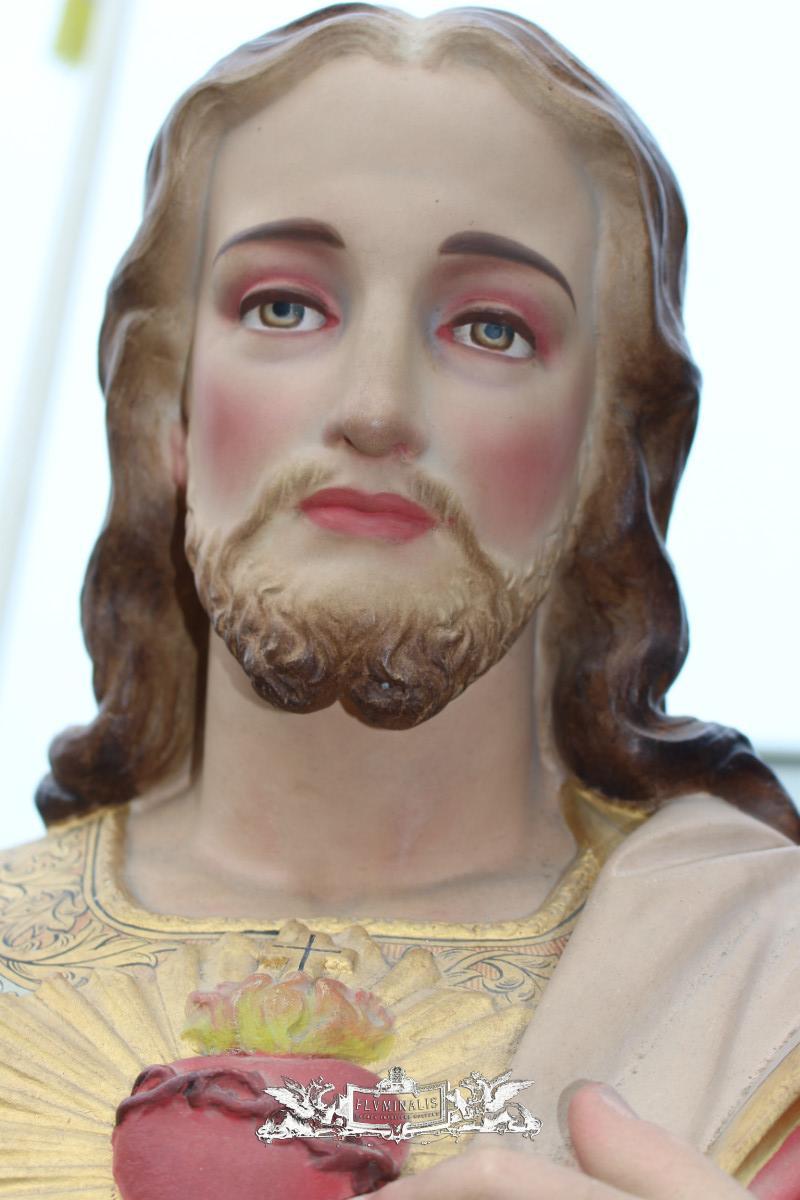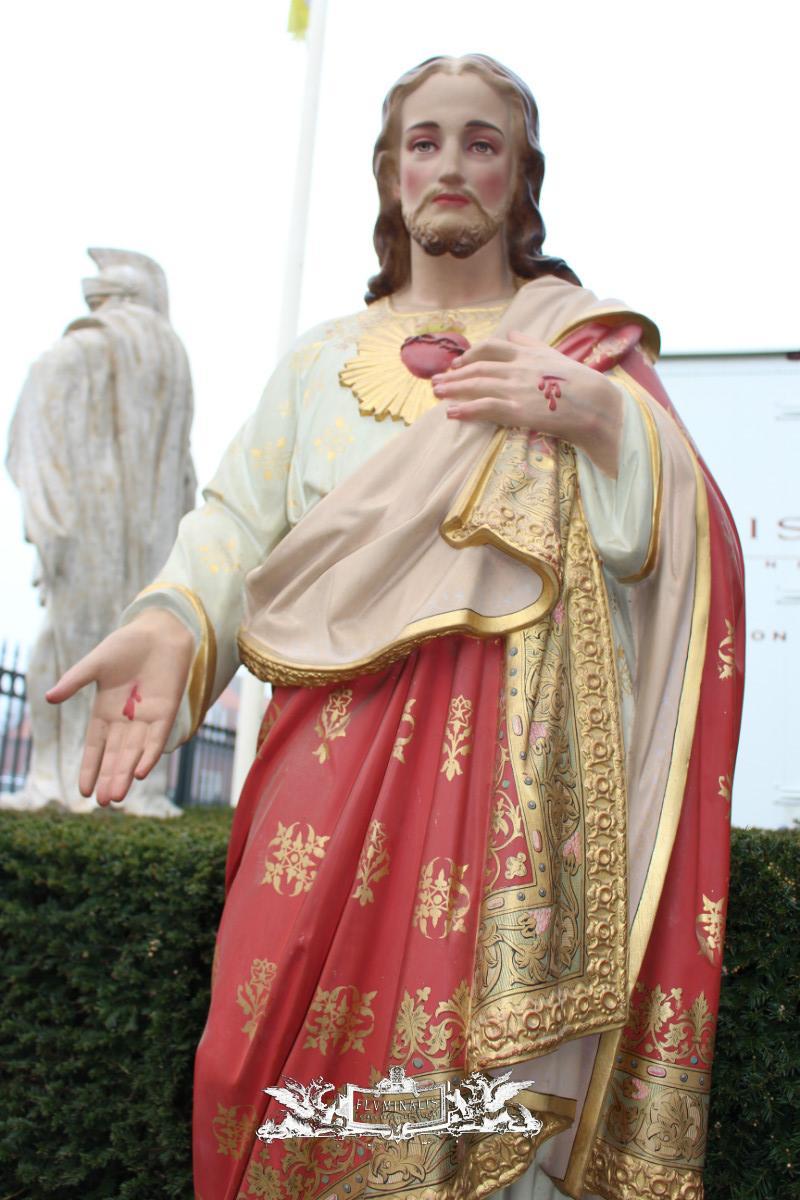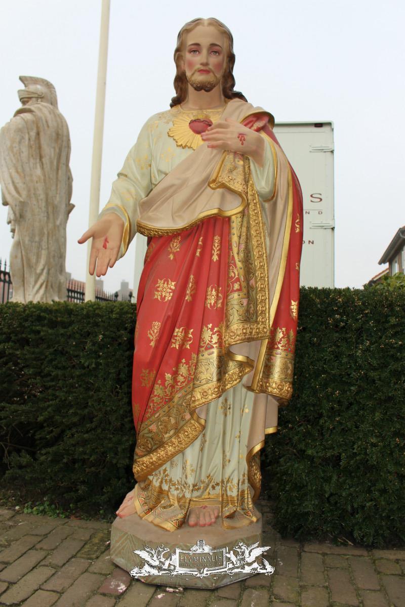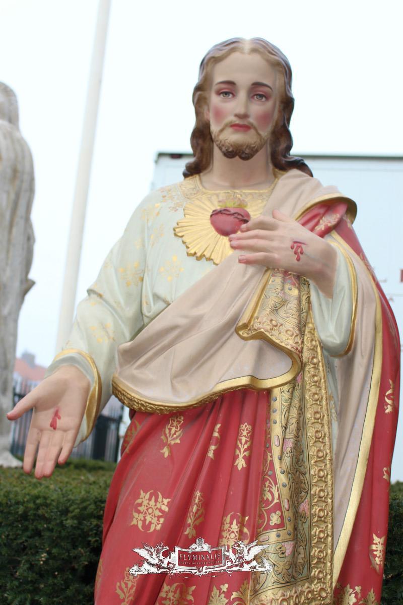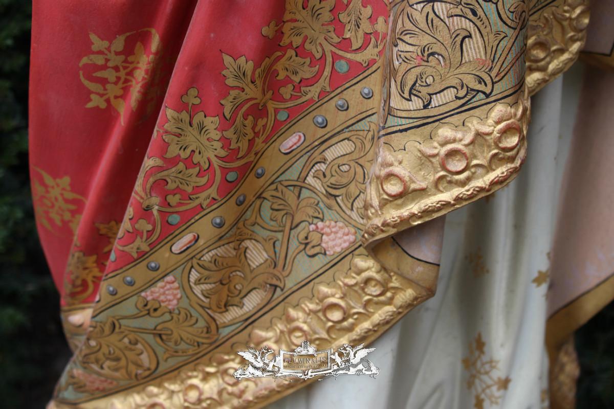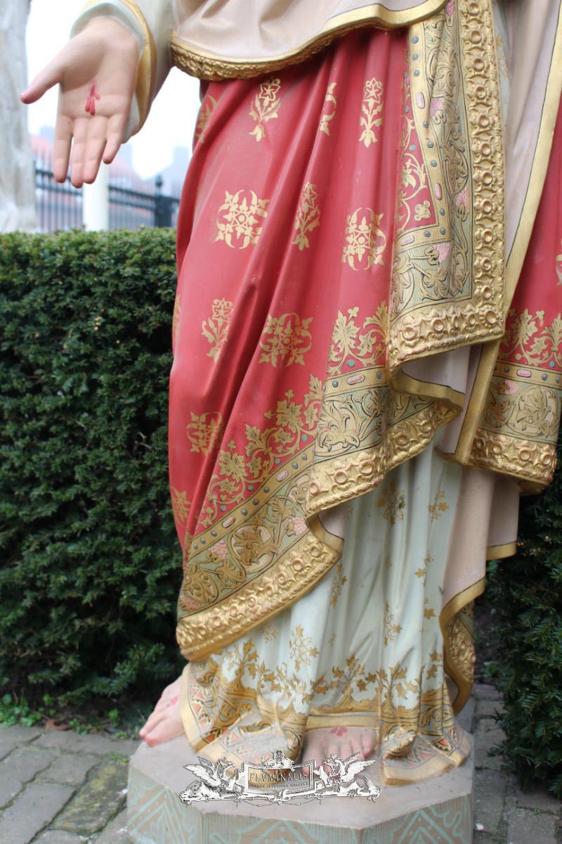 H.Heart Statue style Gothic - Style en Terra-Cotta polychrome, France 19th century anno 1875