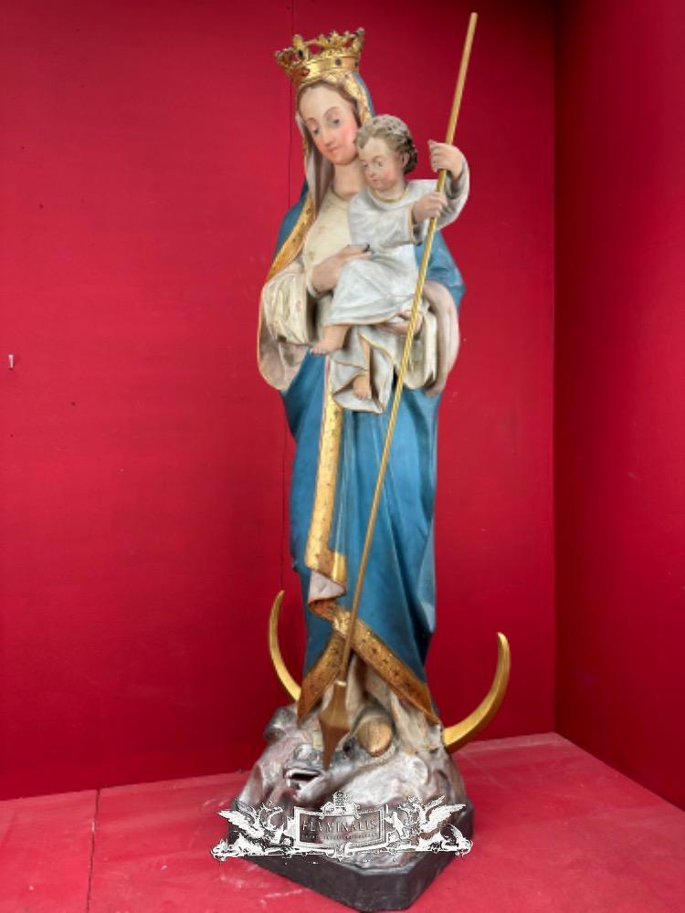 Large St. Mary With Child Statue style Gothic - Style en Plaster, Belgium 19 th century ( Anno 1885 )