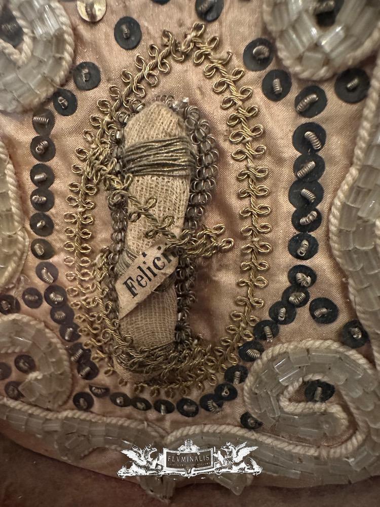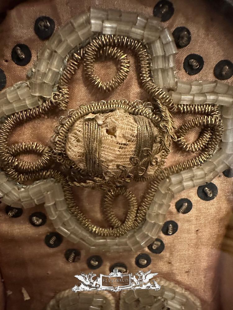Early Reliquary Fully Hand - Made Monastery - Work First Class Relics ( Ex Ossibus ) St. Felicis. ( S. Felix ). en Glass / Fabrics , Italy 18 th century ( Anno 1725)
