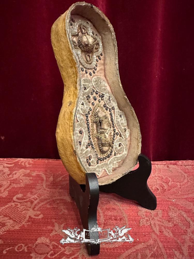 1 Early Reliquary Fully Hand - Made Monastery - Work First Class Relics ( Ex Ossibus ) St. Felicis. ( S. Felix ).