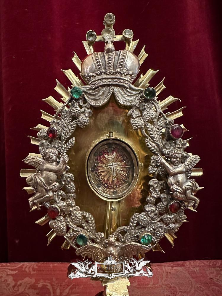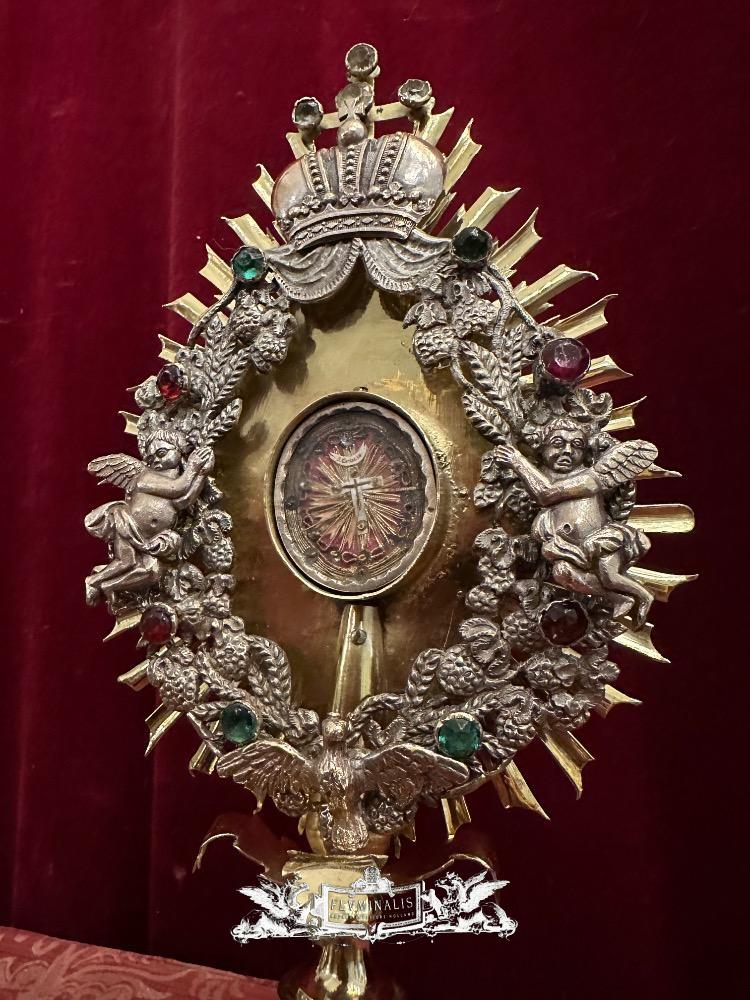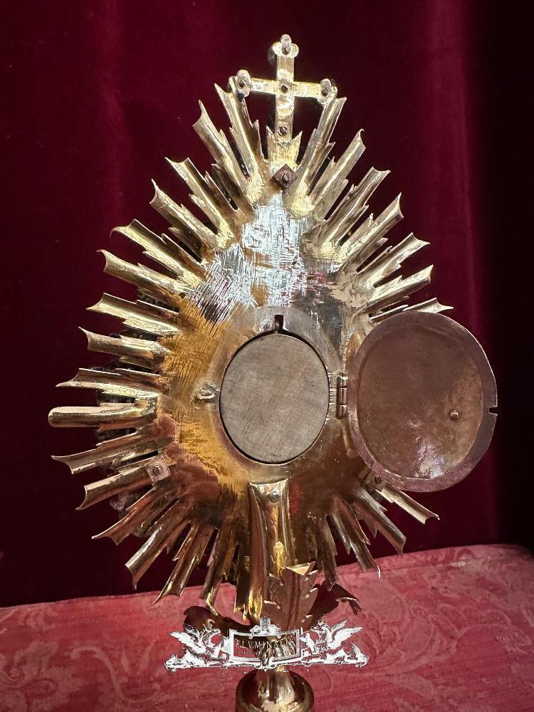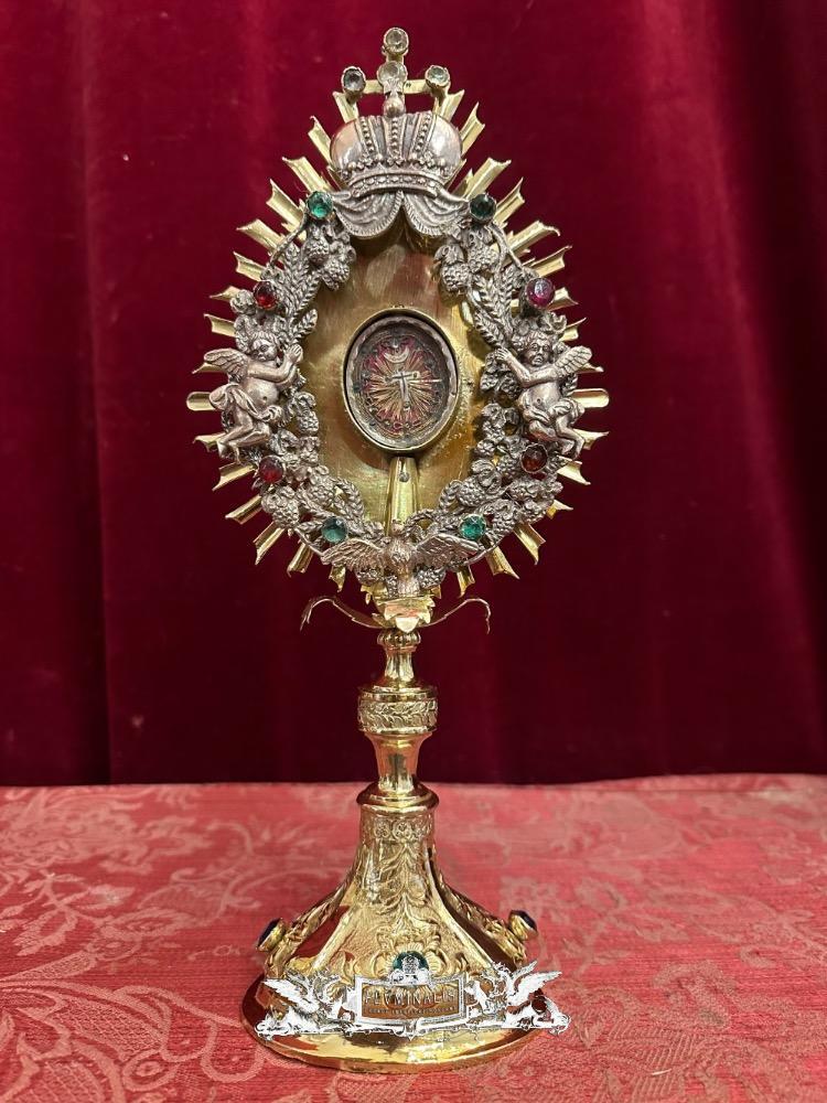Reliquary - Relic True Cross style Baroque - Style en Brass / Glass / Stones / Polished & Varnished, Austria 18th century Anno ( 1775 )