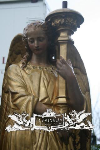 MATCHING PAIR OF TABERNACLE-ANGELS, TERRA-COTTA, 116 CM / 46” , MANUFACTURED BY REGONY-PARIS ANNO ABOUT 1865.