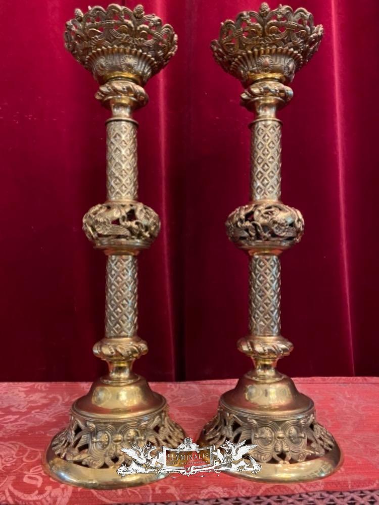 Candle Holders style Romanesque - Style en Bronze Gilt, France 19 th century ( Anno 1890 )