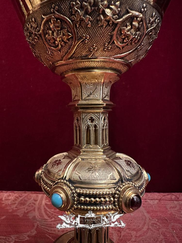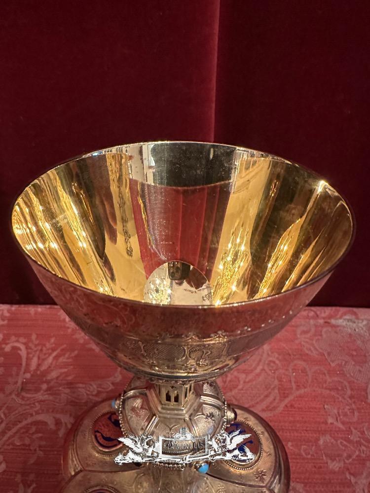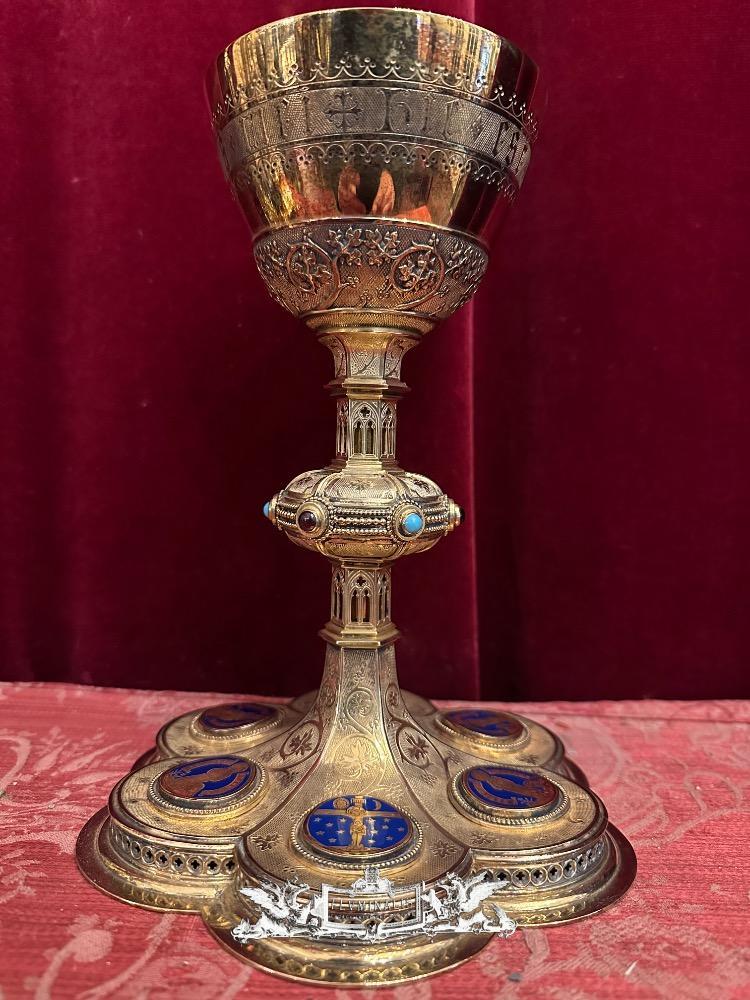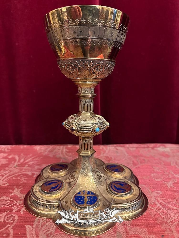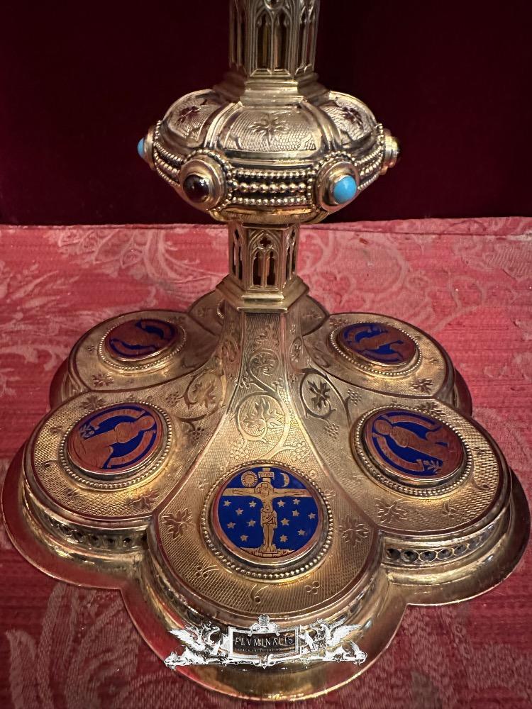 Chalice By: Bourdon Gent style Gothic - Style en Full - Silver / Silver Marks Present / Enamel / Stones, Gent - Belgium 19 th century ( Anno 1875 )