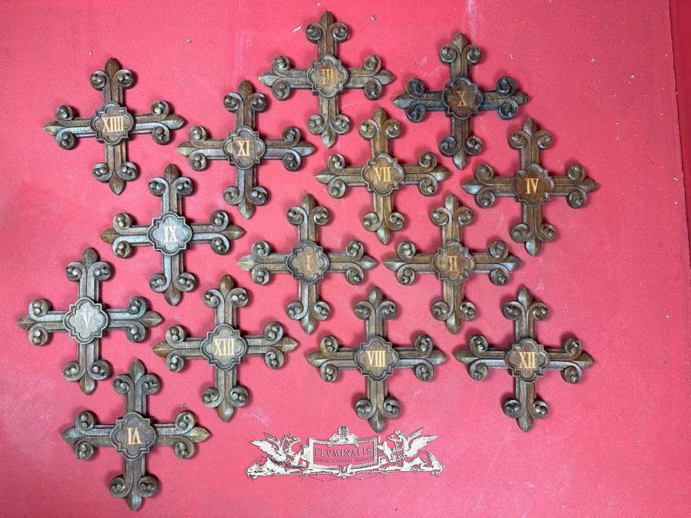 Complete Series Of 14 “Cross-Stations” Of The Cross style Gothic - Style en Oak wood, France 19 th century ( Anno 1865 )