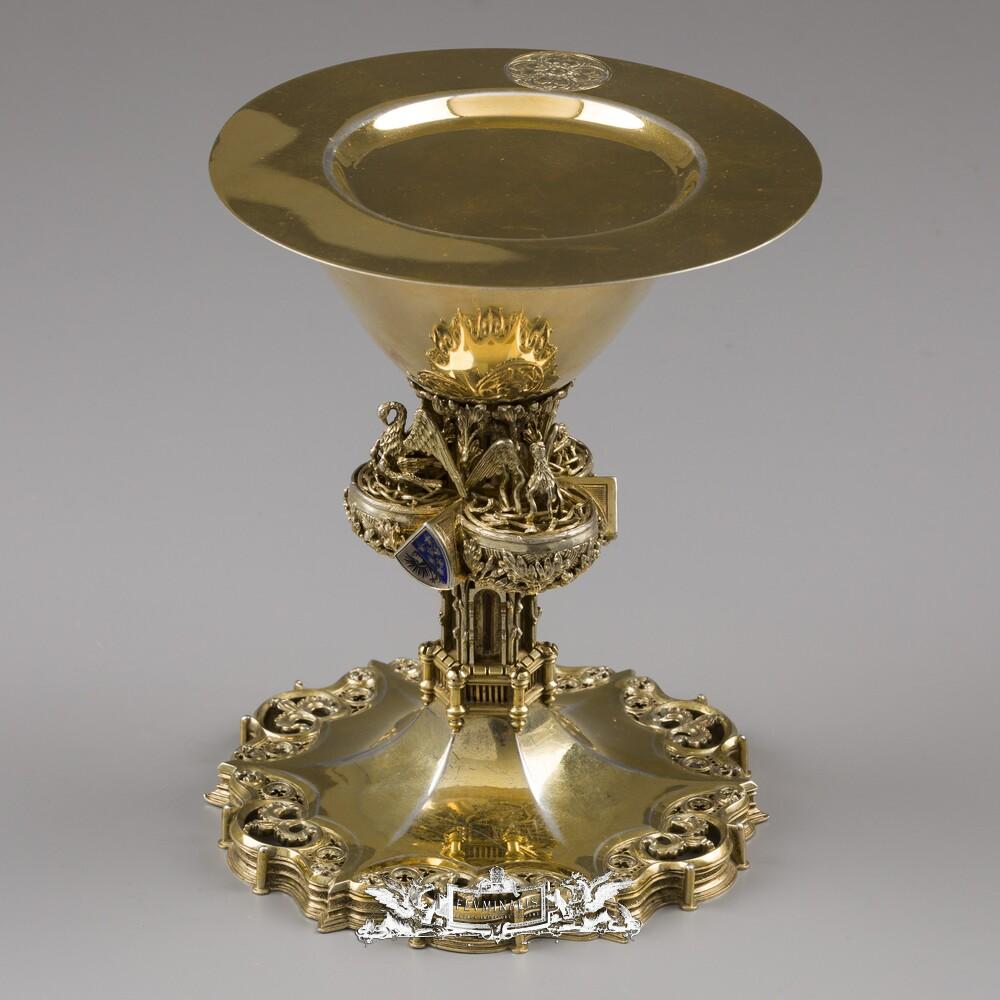 BY AUGUST WITTE, AACHEN - GERMANY. COAT OF ARMS OF VATICAN CITY. THIS CHALICE DID BELONG TO THE CHURCH HISTORIAN DOCTOR ALPHONS BELLESHEIM. PRIEST IN THE VATICAN AND VICAR IN COLOGNE.