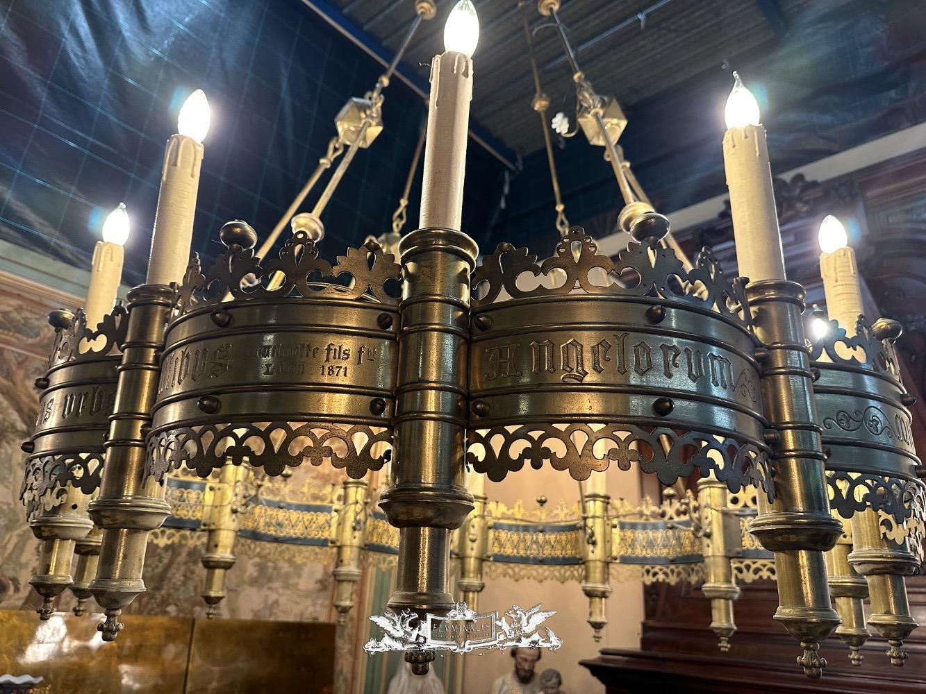 Exceptional Chandelier style Gothic - Style en Brass / Bronze , Belgium 19 th century ( Anno 1865 )