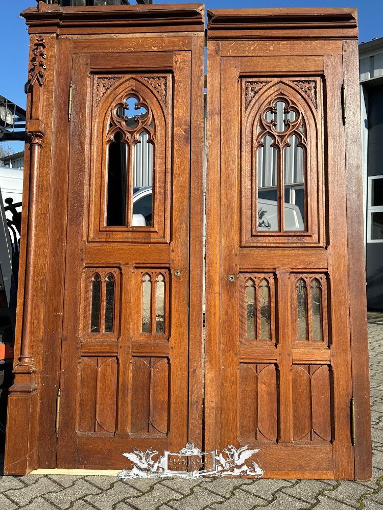 High Quality Confessional Doors style Gothic - Style en Solid - Oak wood, Belgium 19 th century