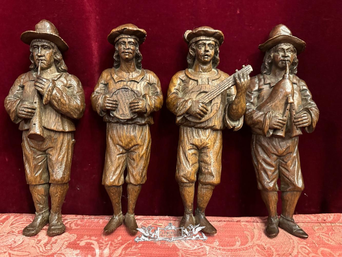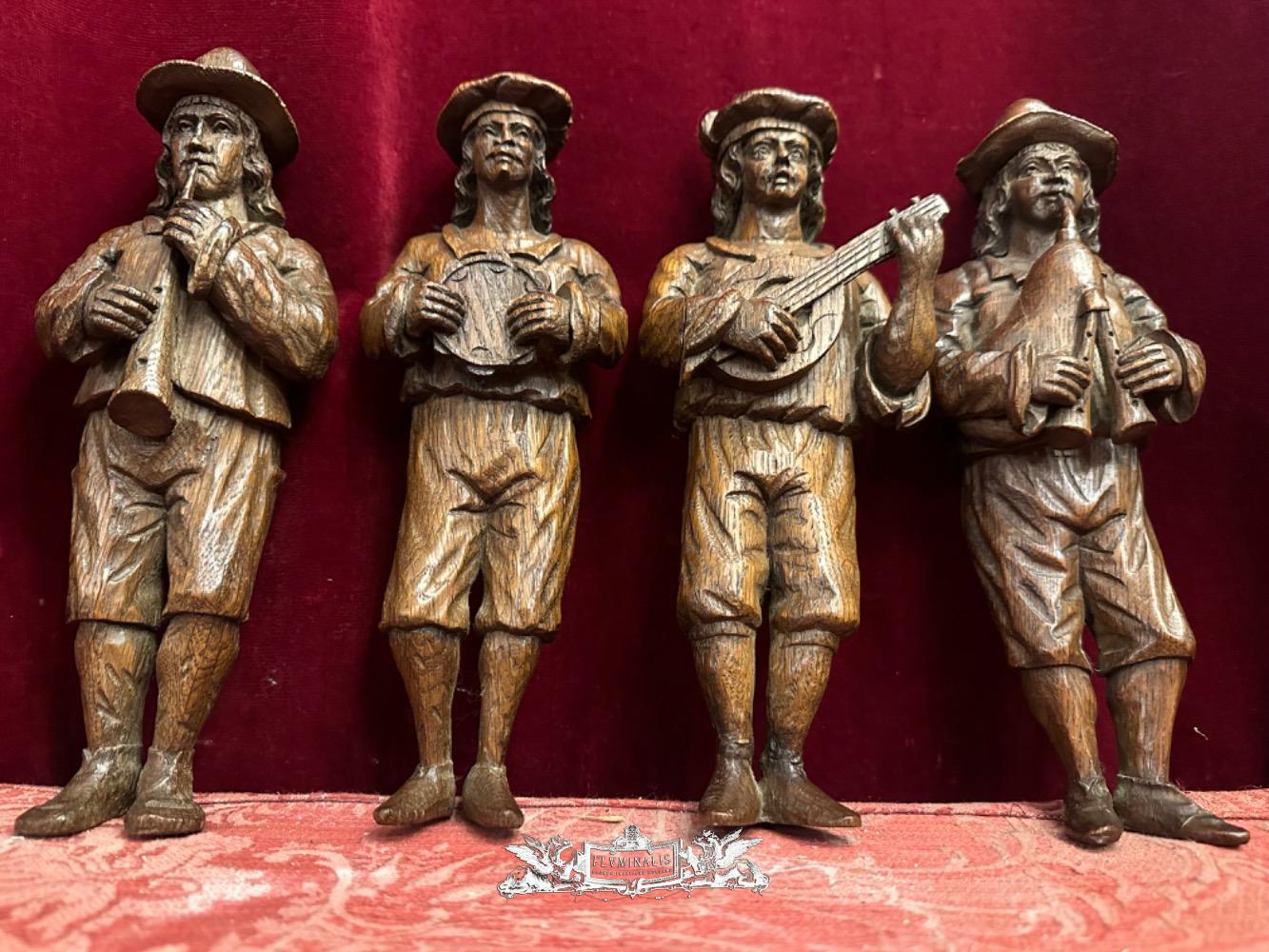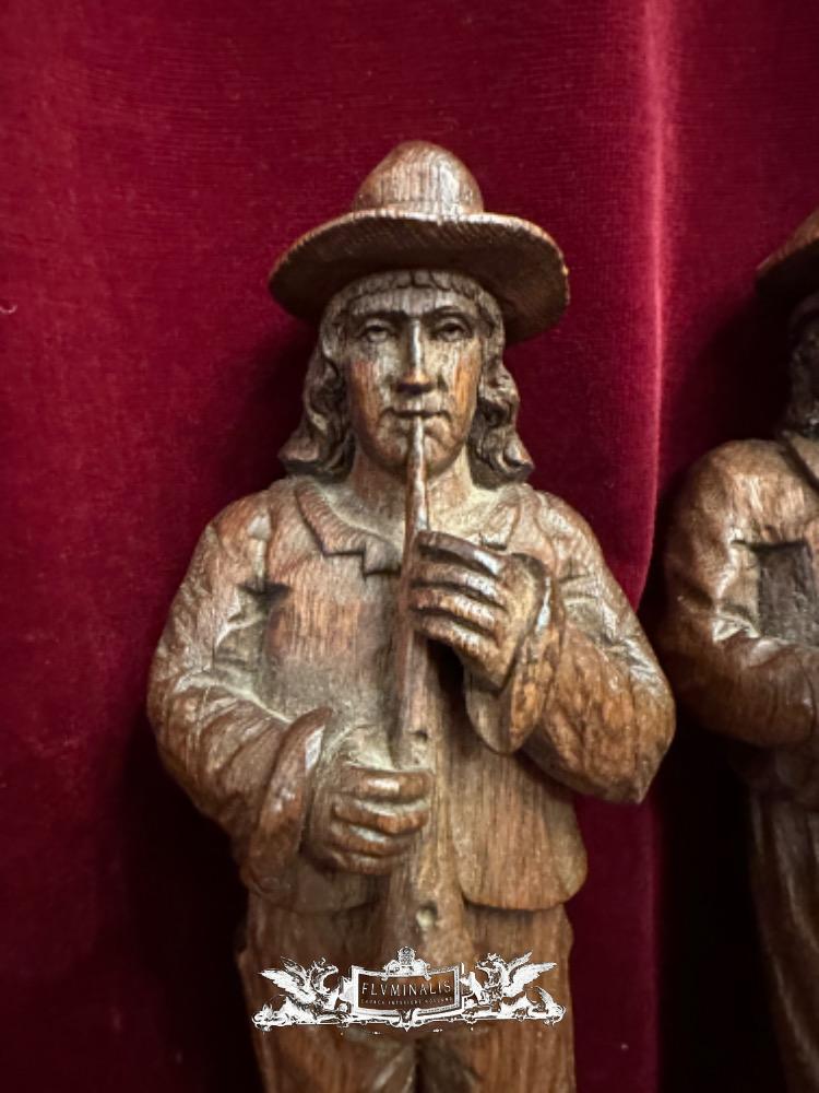 Itinerant Musiciens / Vagabond Pipers en Fully Hand - Carved Wood Oak, Belgium 19 th century