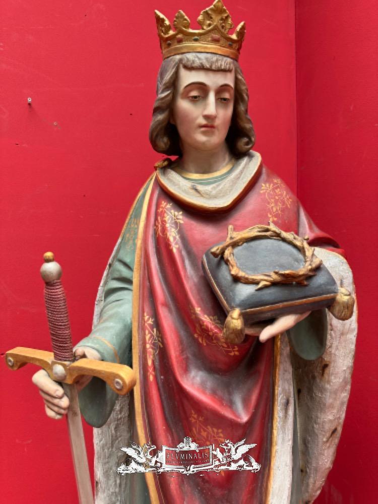 St. Louis Statue style Gothic - Style en Plaster polychrome, France 19 th century ( Anno 1885 )
