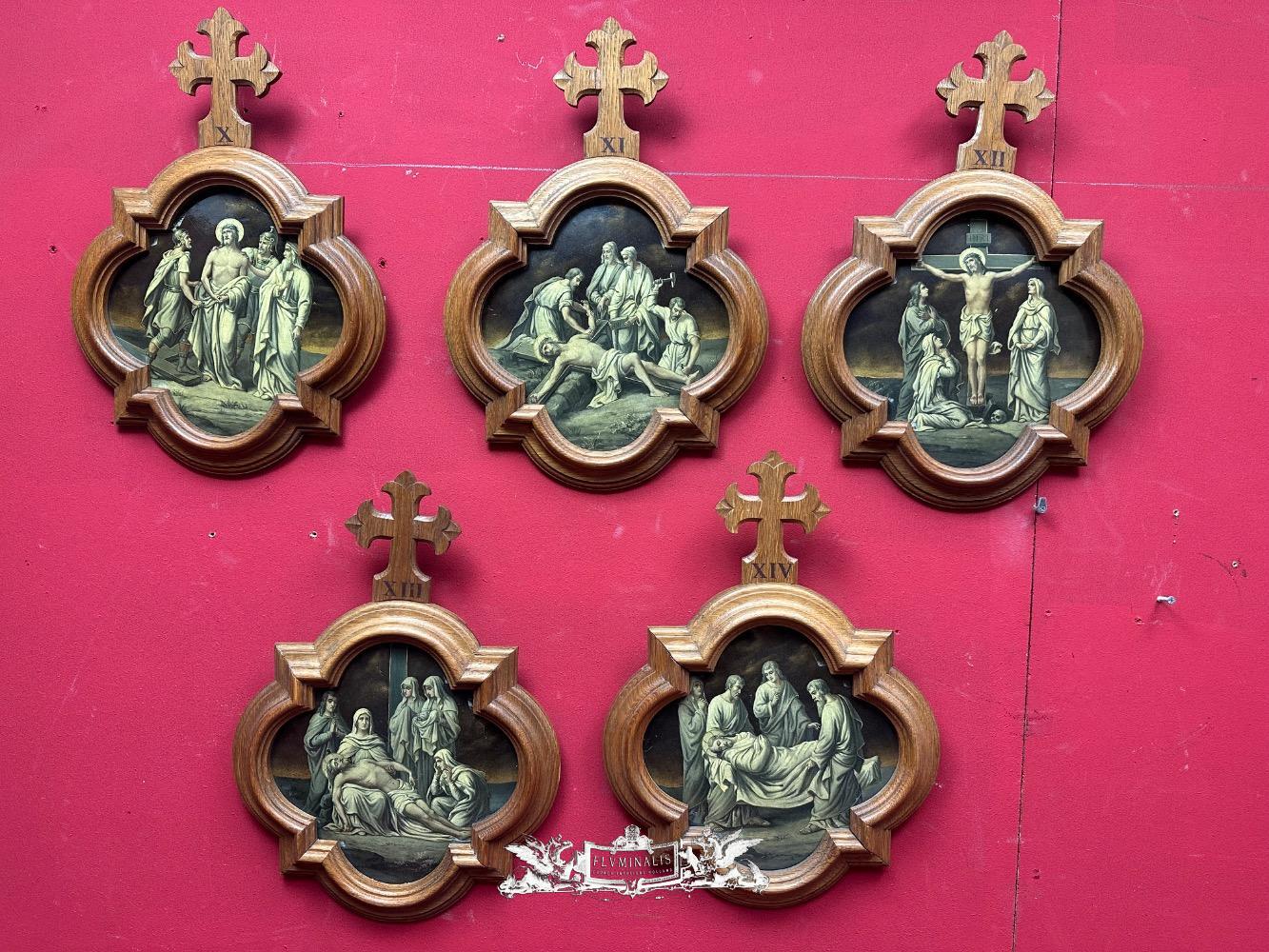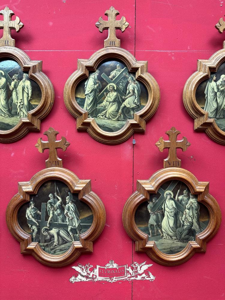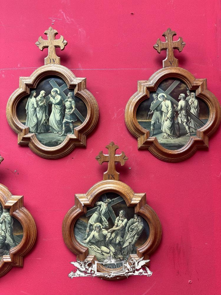 Stations Of The Cross style Gothic - Style en Wood Oak Frames / Painted on Brass, France 19 th century ( Anno 1865 )