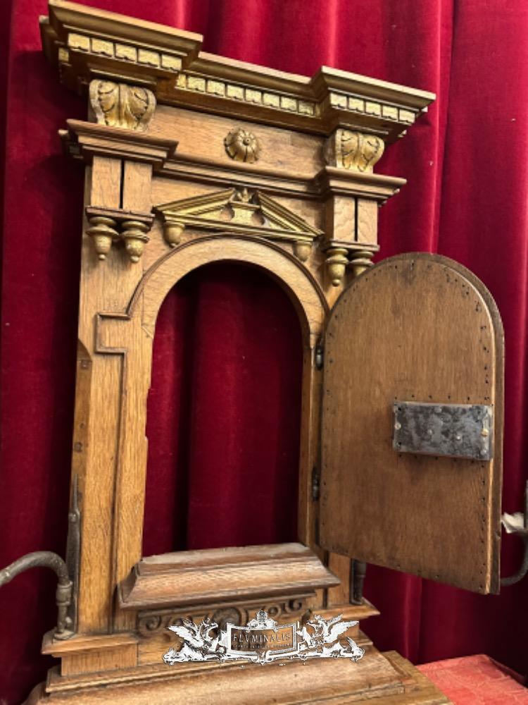 Tabernacle Front With Imagination Of The Risen Christ style Romanesque - Style en Oak wood / Hand - Forget Iron, Flemish - Belgium 19 th century ( Anno 1850 )