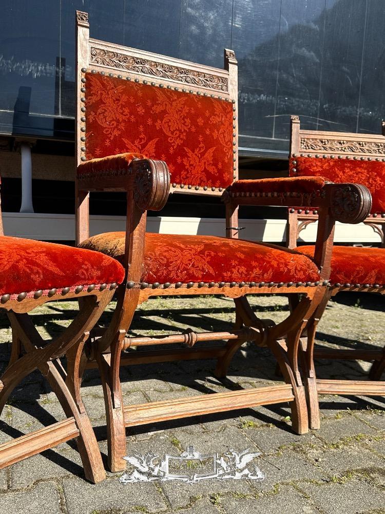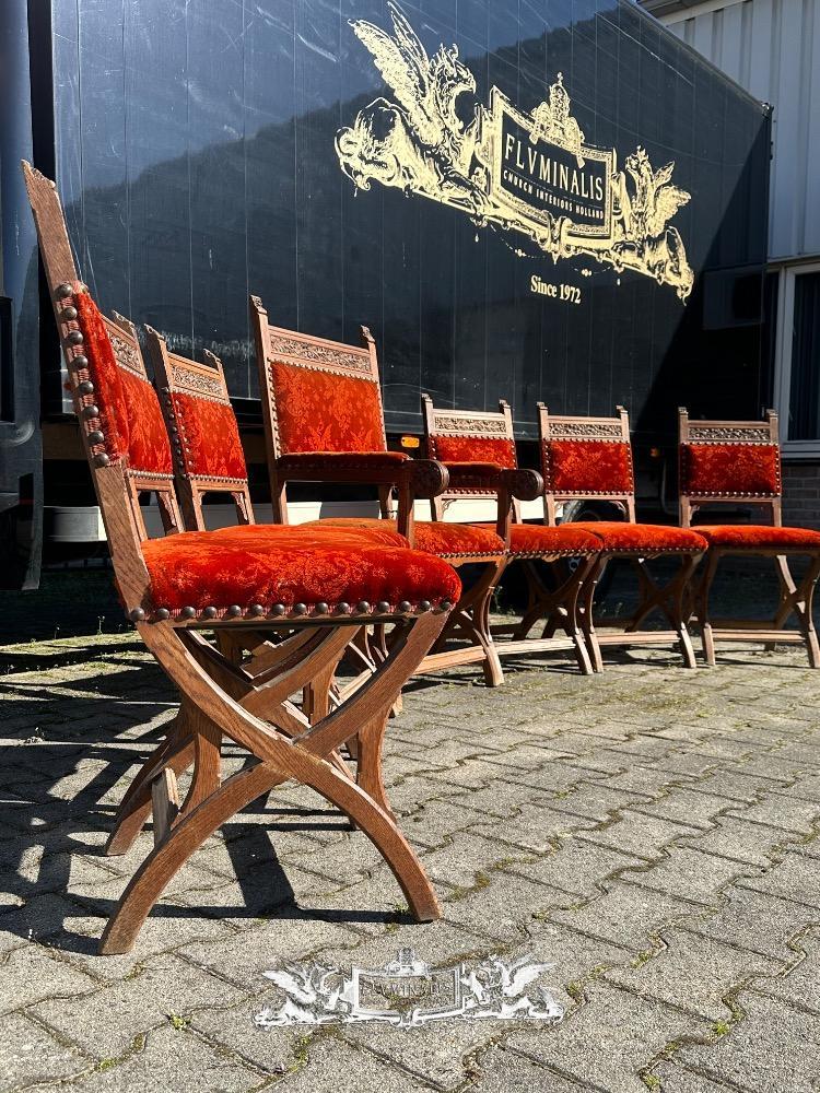 Chairs style Gothic - Style en Oak Wood / Fabrics, Belgium 19 th century