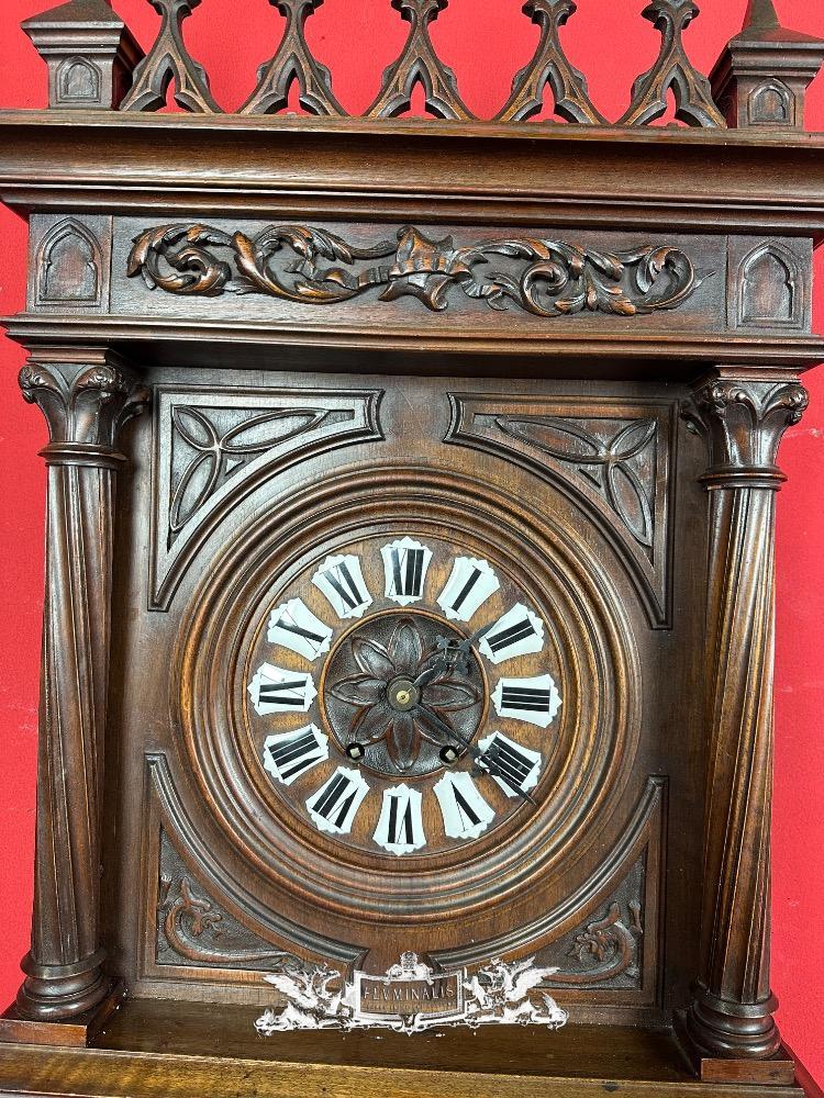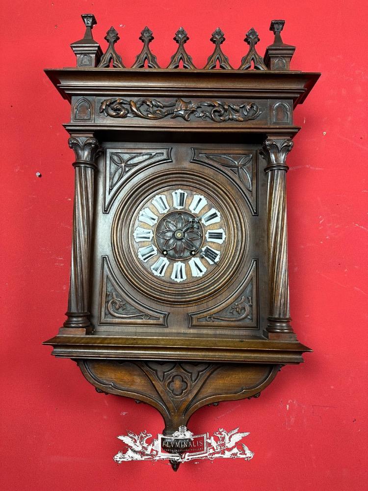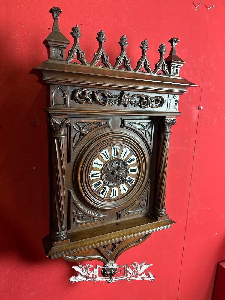 Clock style Gothic - Style en Walnut wood / Enamel / Brass / Bronze, France 19 th century ( Anno 1885 )